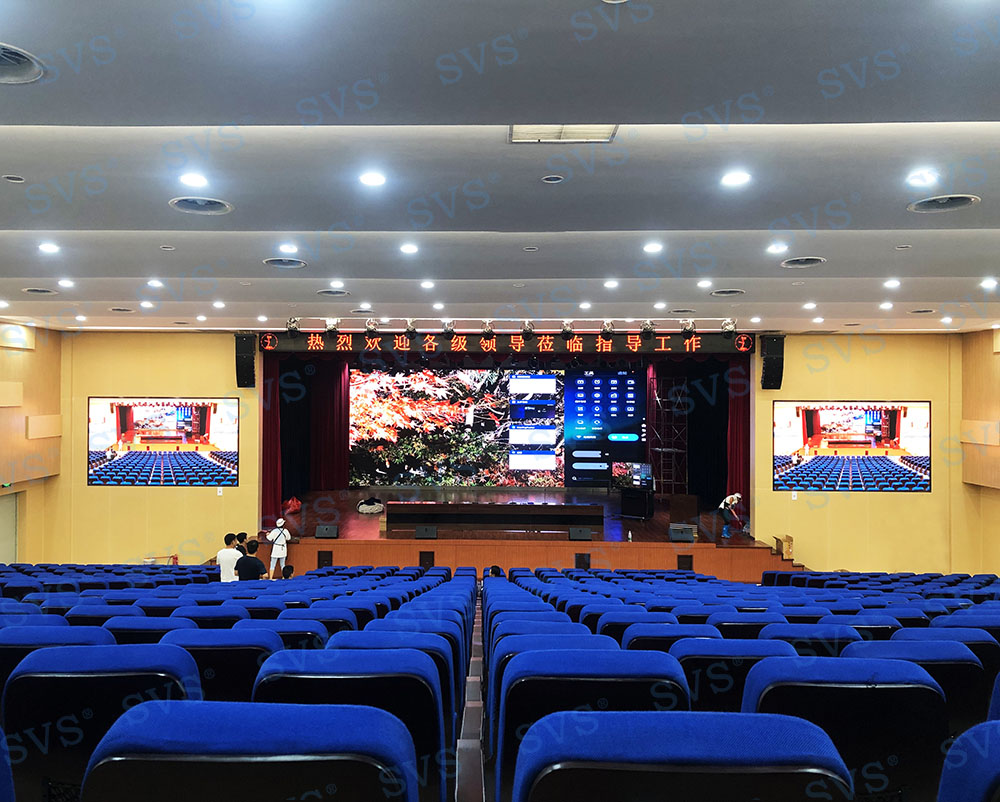 ,此次迅控为某中学打造大型阶梯多功能厅,会场可容纳近800人进行会议。因为会场场地较大,且客户希望打造出高品质的声场效果,迅控为客户专门推荐了L系列线阵音箱,线阵音箱在主轴垂直平面指向性呈窄波束,能量叠加可以远距离辐射。弯曲的线性音箱组装可以让下端覆盖近区,中上端覆盖中区及远区,形成自近而远的等声压覆盖。线阵音箱采用专用数字处理器精准分频后由高阻尼的功率放大器推动各频段内部单元,让不同频段的声音,只在不同的单元特性范围里响应,各司其职,达到完美吻合度,解决了传统的音箱墙导致的声音干涉,浑浊,声压远近不均匀的难题。并配置全新数字调音台D2018,多种效果预设,让声音处理达到专业表演级标准,现场效果得到客户一致好评。