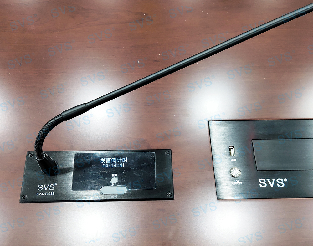 ,此次SVS为某商务酒店打造无纸化会议室,为客户推荐使用双屏升降器SV-LCD17TD,配合专业无纸化服务器SV-MP200B,此款服务器核心程序采用无人值守模式,开机后台自动运行;支持应用服务、消息服务和媒体服务监控功能;支持系统管理功能、人员管理功能、建立会议界面、会议资料管理功能、会议投票等功能。信号处理系统选用混合型处理主机D3001(S),此款主机包含音视频信号和控制信号处理功能,支持HDMI,VGA、DVI和SDI等视频信号,中控部分支持串口、红外、弱继电器和IO等接口。可以满足各种类型应用场合(例如:报告厅、多功能厅、无纸化会议室、视频会议室、指挥中心、数字展厅等)视音频信号高速切换和中控控制的要求。中控系统、会议系统、扩声系统、发言系统的相互结合,轻松提高会议效率,打造出一个具有先进性和实用性的数字无纸化会议室。