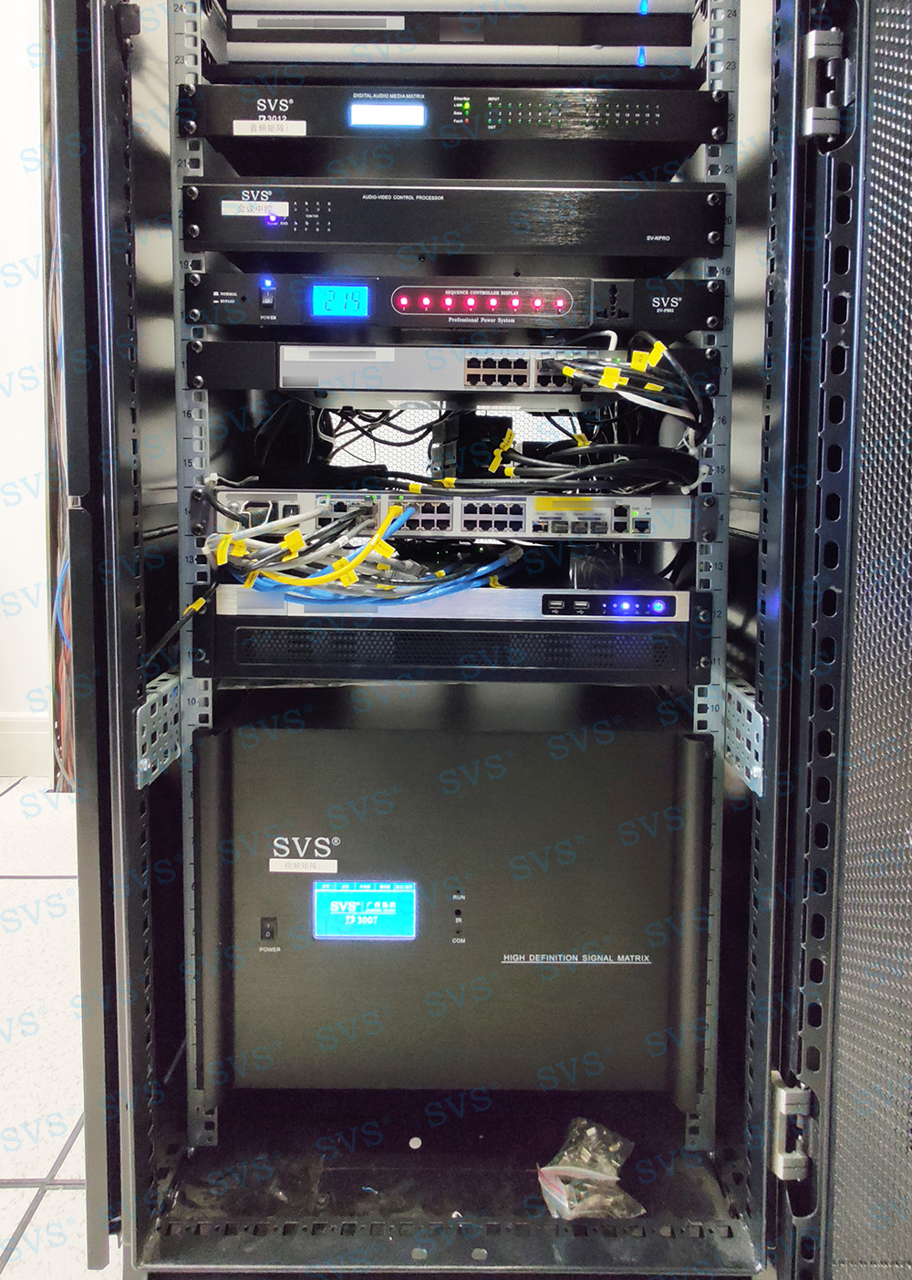 ,此次SVS为某税务局打造远程视频会议中心,会场可容纳近210人进行会议。会场选用信号共享器D3007,该系列高清信号共享器采用信号板卡与母体机插卡式分离设计,高性能高清音视频和控制信号处理设备,提高了视频系统的兼容性、稳定性,也提升了视频显示质量,真正实现了系统按需定制,轻松实现超清、高清、标清等多格式音视频信号输入、输出的无缝切换。高清信息时代,图文视频已得到普及性的发展,该设备已成为新时代会议室、监控中心、指挥中心、展览馆等场所必不可少的重要设备。中控系统与信号系统相互配合,轻松实现多路信号和综合智能设备的控制与管理。