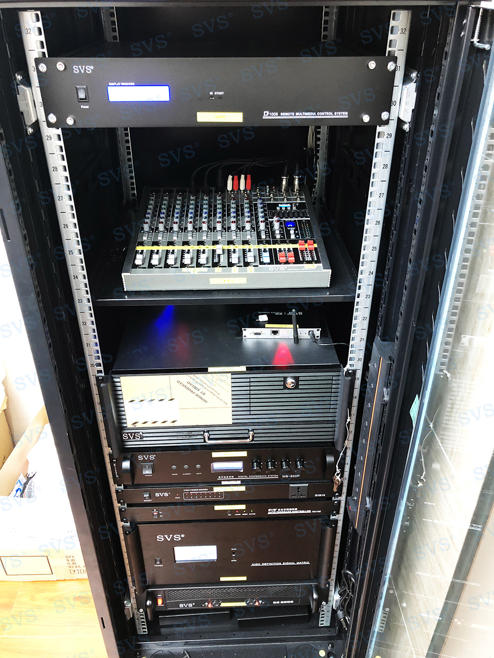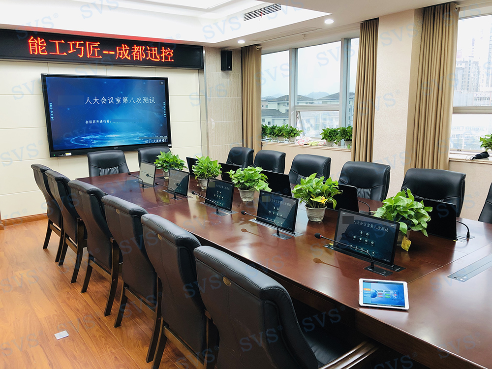 ,此次SVS为某县人大打造无纸化会议室,为客户推荐使用液晶屏升降器SV-LCD17,配合专业无纸化服务器SV-MP200B,核心程序采用无人值守模式,开机后台自动运行;支持应用服务、消息服务和媒体服务监控功能;支持系统管理功能、人员管理功能、建立会议界面、会议资料管理功能、会议投票等功能。另选阵列音箱D2023,此款音箱因为体积小、功率大,可级联叠加和易安装等特点,被广泛应用于高端会议室、影院、报告厅和礼堂等场合。轻松实现普通会议、无纸化会议、多媒体会议等多种会议模式的切换。整体效果获得现场一致好评。
