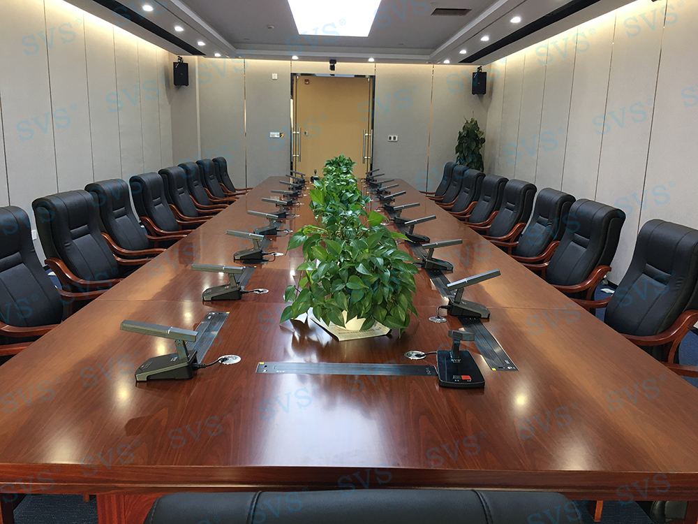 ,此次SVS为某企业打造无纸化会议室,为客户推荐使用液晶屏升降器SV-LCD17,配合专业无纸化服务器SV-MP200B,轻松提高会议效率。发言系统选用可移动式时钟会议发言单元SV-MT338A/B,单元具有新型的OLED显示大屏,程序化显示时钟、发言计时、倒计时等内容,让会议更加高效、高质量完成;配合数字处理电路,展现高保真、高灵敏度、远距离发言效果;组建系统简单,使用方便,功能强大,效果一流,适用于高要求、固定多位置需要发言的会议场所。打造出一个具有先进性和实用性的数字无纸化会议室。
