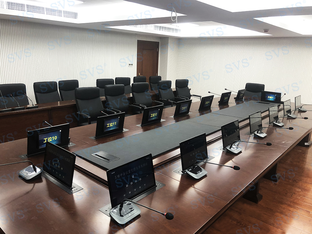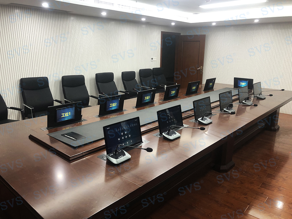 2.双屏升降器SV-LCD17TD,配合专业无纸化服务器SV-MP200B,此款服务器核心程序采用无人值守模式,开机后台自动运行;支持应用服务、消息服务和媒体服务监控功能;支持系统管理功能、人员管理功能、建立会议界面、会议资料管理功能、会议投票等功能。轻松实现普通会议、无纸化会议、多媒体会议等多种会议模式的切换。