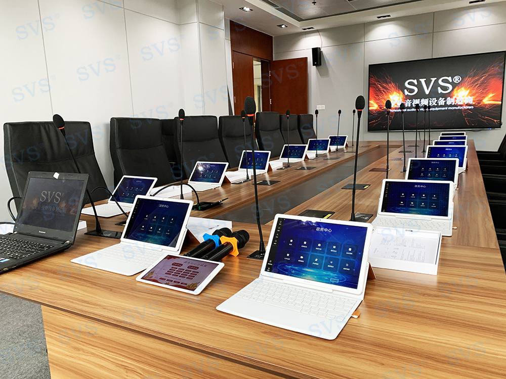 ,此次SVS为某政务中心打造高端平板无纸化会议室,使用平板搭载SVS无纸化会议系统,更加简洁,轻松实现普通会议、无纸化会议、多媒体会议等多种会议模式的切换。另选线性阵列音箱D2021,该音箱单元采用3D新型安装方式,非传统的简单平面布置措施,保证了不同的单元声音输出声波不叠加能量,让发出的声音更加清晰,有效声场范围更广,也避免了声波能量抵消,自然达到高保真音质和高还原度的效果。整体效果获得一致好评。