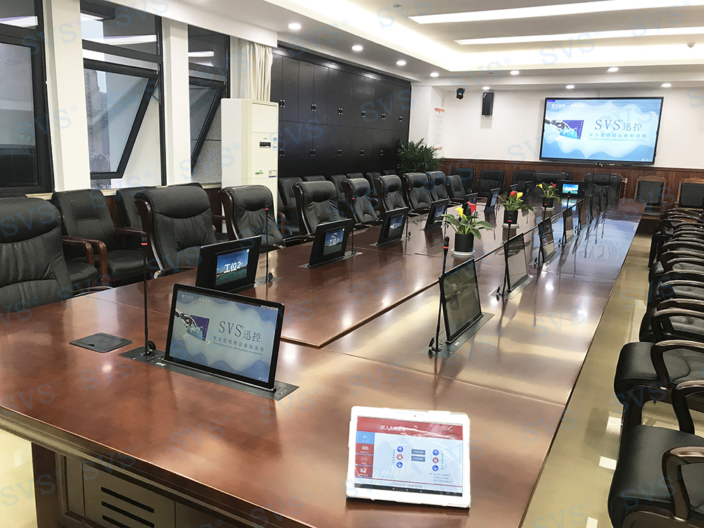,近日迅控科技助力某人大打造无纸化会议室,会场共设18个席位,为每个席位配置带话筒双屏升降器SV-LCD17(A1/B1),屏机联体,主副双面屏显示、发言麦克风结构一体化设计;显示屏和发言麦克风均可独立电动升降。配合无纸化会议系统,硬件和软件相互结合,轻松提高会议效率,既保留了原有会议的简洁,也扩展了时下高效科学的无纸化会议模式,让会议更加的多元高效。