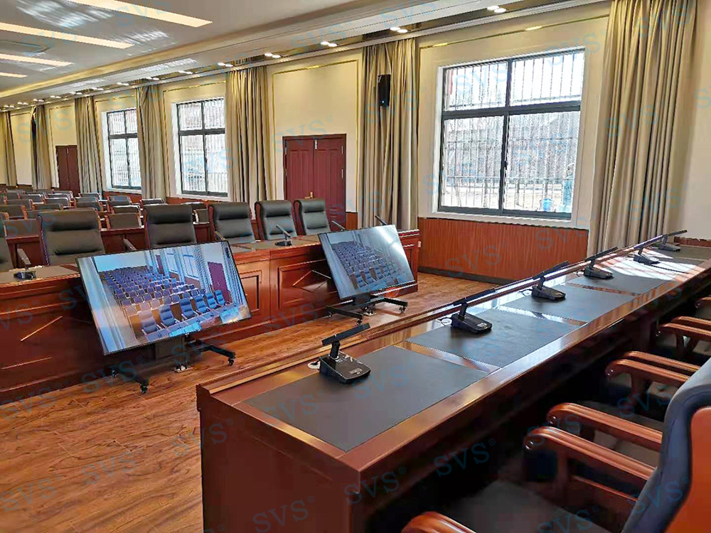 ,近日SVS为某部队学院打造一个高品质的多功能报告厅。根据会场的与会人数、面积大小、以及用户想要达到的会议效果会场选用可移动式时钟会议发言单元SV-MT338A/B,数字处理电路,展现高保真、高灵敏度、远距离发言效果;组建系统简单,使用方便,功能强大,效果一流。搭配高清会议摄像机HD1080,外形时尚精致,拥有20倍光学变焦镜头,具备超高图像解析力,支持1080P高清分辨率,同时应用了2D和3D降噪算法,采用先进的低噪声传感器,有效降低了噪声。摄像机画面曝光均匀,层次感强,是现代视频会议室及各类数字报告厅、多功能厅等场所不可或缺的设备之一。