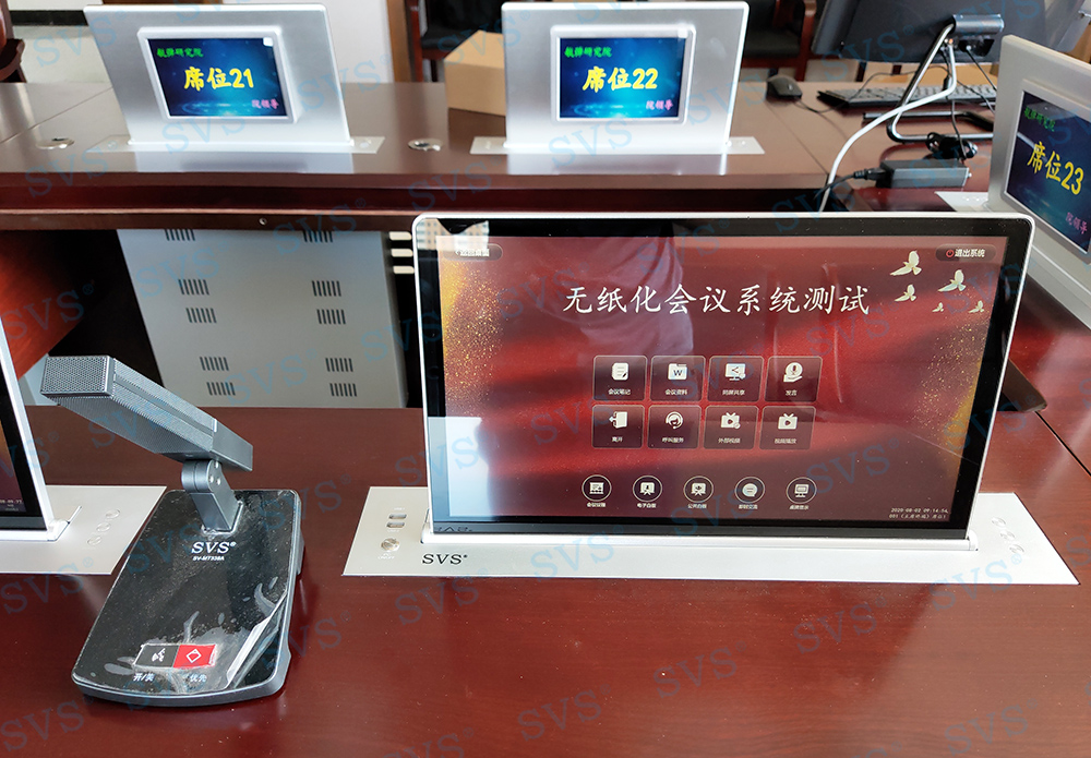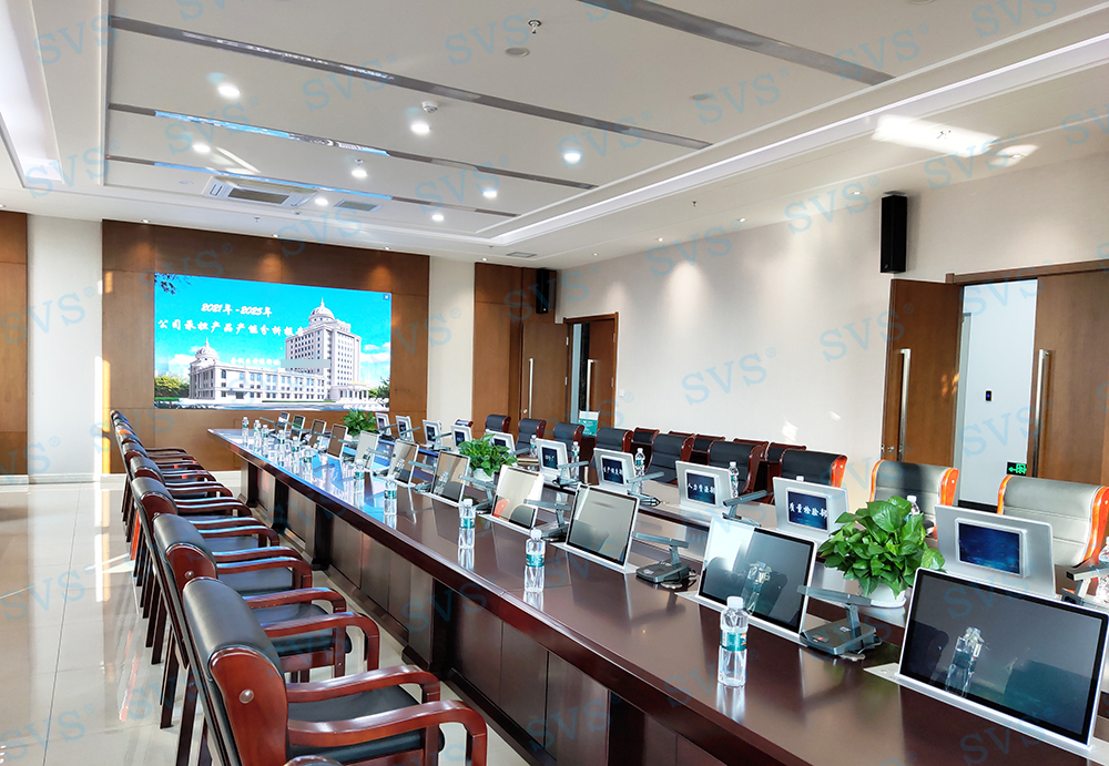 ,此次SVS为某军工企业打造无纸化会议室,会场可作多种用途使用,中控系统、会议系统、扩声系统、发言系统的相互结合,轻松提高会议效率,各个系统的互联互通,最终效果获得现场一致好评。