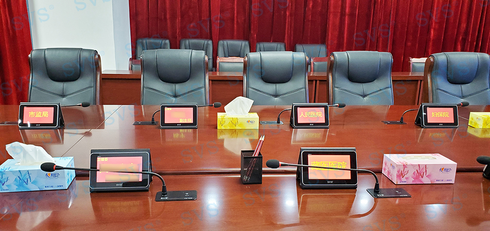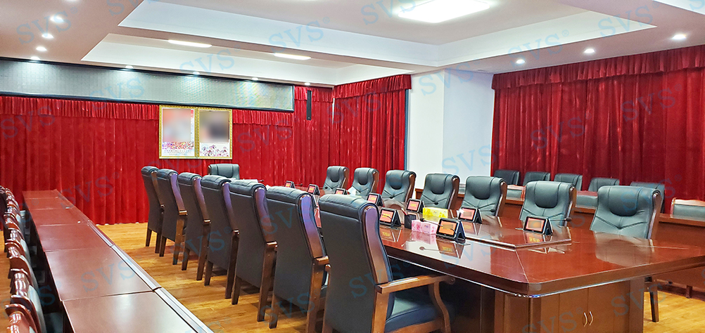 ,此次SVS为某市卫健委打造数字无纸化会议中心,会场选用嵌入式发言单元+双面电子桌牌,再搭配线性阵列音箱,使得会场声音更加清晰,有效声场范围更广,也避免了声波能量抵消,自然达到高保真音质和高还原度的效果。中控系统、会议系统、扩声系统、发言系统的相互结合,轻松提高会议效率,打造出一个具有先进性和实用性的数字无纸化会议中心。