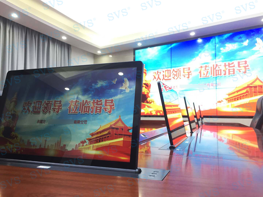 此次SVS为某市人大常委会打造预算联网监督室,会场共设10个席位,为每个席位配置液晶屏升降器SV-LCD17,搭配无纸化软件,提供了强大的会议管理功能。包括多会议信息的制定发布及会议议程提醒,会议签到、投票,会议资料共享和批注,会议同屏,会议笔记及会议服务功能,为与会人员提供一个多功能、全方位、保密性的无纸化会议平台。轻松实现普通会议、无纸化会议、多媒体会议等多种会议模式的切换。