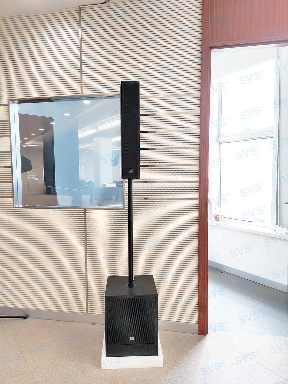 ,此次SVS为某银行打造数字化会议项目,为客户推荐使用新型会议系统单元SV-WM90A/B,内有液晶屏,可显示电量、欠压报警、频段信息、信号强弱、开关状态等信息,一目了然;进口高保真、远距离拾音咪芯和防手机干扰电路,保证发言效果。各个系统互联互通,搭配专业音箱D2022、D2023、D2122,其中D2022、D2023是一款紧凑型大功率的线性阵列音箱。采用3D新型安装方式,非传统的简单平面布置措施,保证了不同的单元声音输出声波不叠加能量,让发出的声音更加清晰,有效声场范围更广,也避免了声波能量抵消,自然达到高保真音质和高还原度的效果。因为体积小、功率大,可级联叠加和易安装等特点,被广泛应用于高端会议室、影院、报告厅和礼堂等场合。整体效果获得现场一致好评!