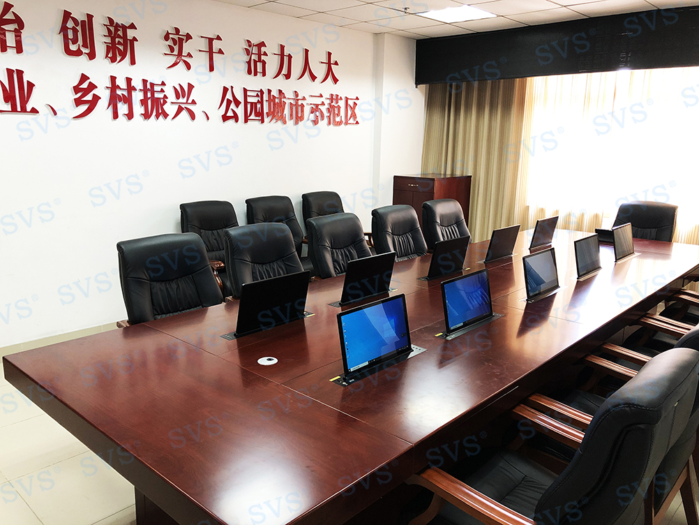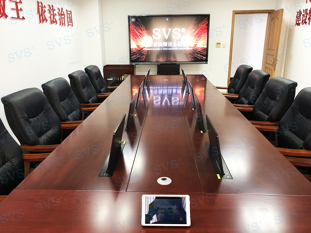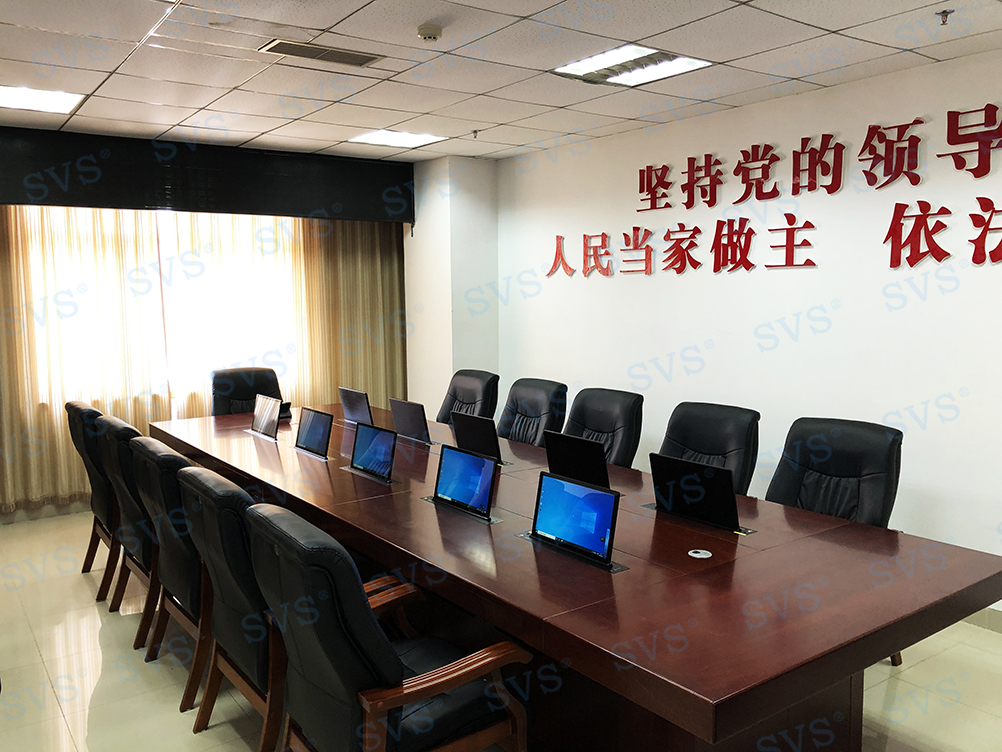此次SVS为某市人大打造无纸化会议室,会场使用隐藏式桌面升降器,配合无纸化会议系统,硬件和软件相互结合,既保留了原有会议的简洁,也扩展了时下高效科学的无纸化会议模式,让会议更加的多元高效。