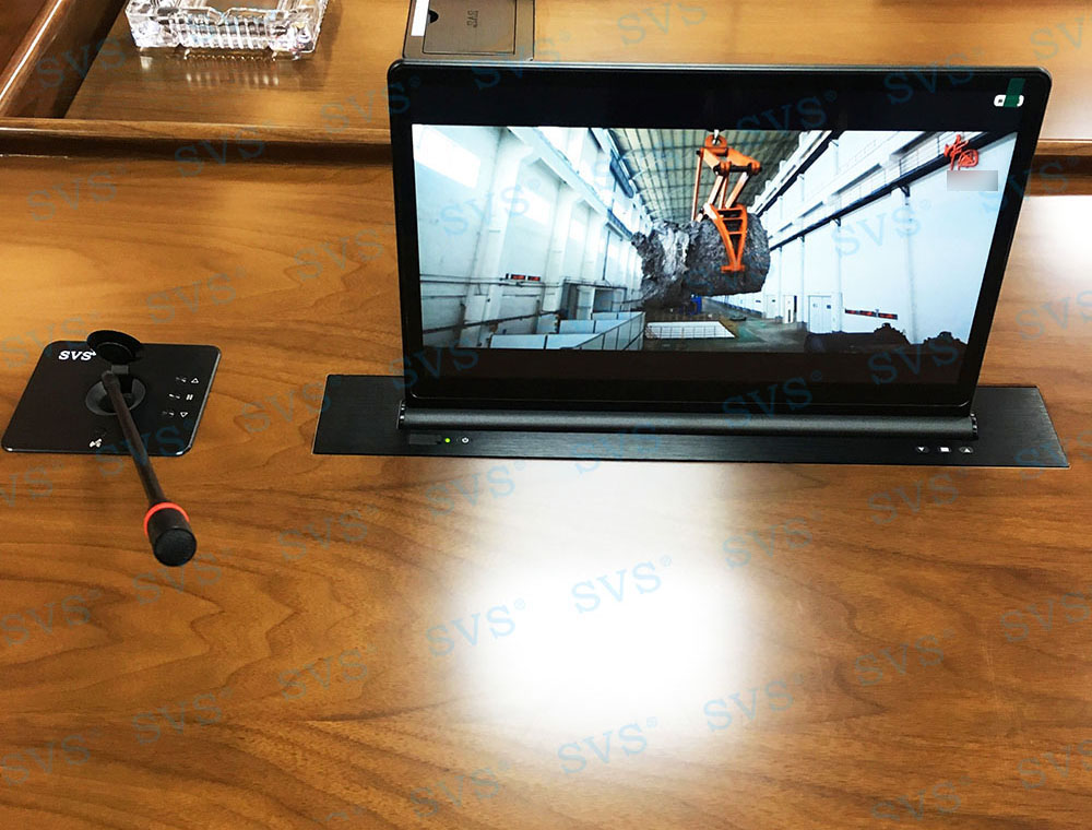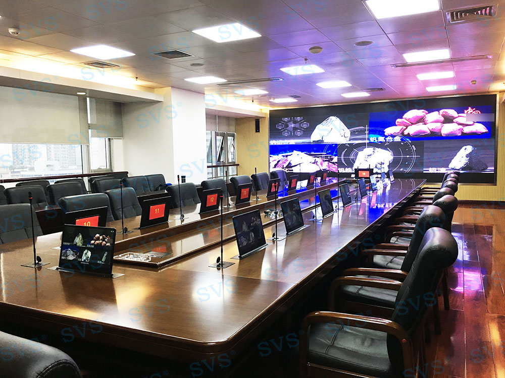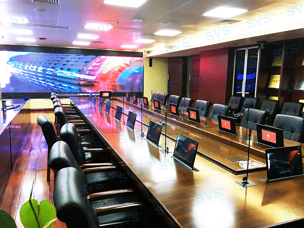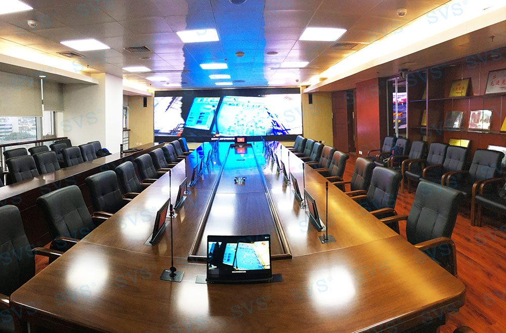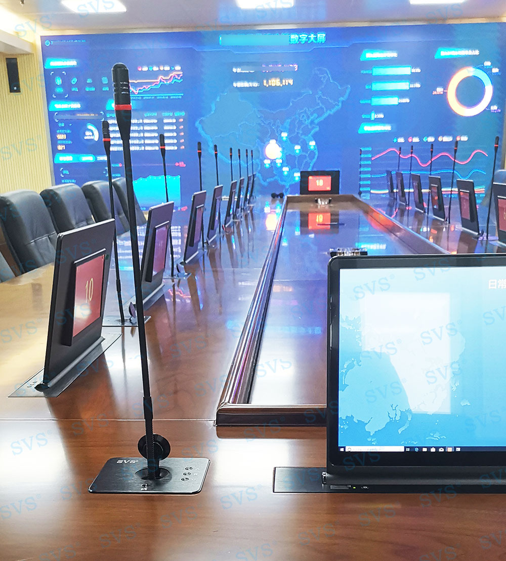 ,此次SVS为某集团打造无纸化会议室,会场共设18个席位。为客户推荐使用双屏升降器SV-LCD17TD+话筒升降器D3070A/B,轻松实现普通会议、无纸化会议、多媒体会议等多种会议模式的切换。扩声系统使用阵列音箱D2023,此款音箱因为体积小、功率大,可级联叠加和易安装等特点,被广泛应用于高端会议室、影院、报告厅和礼堂等场合,因此获得现场一致好评。