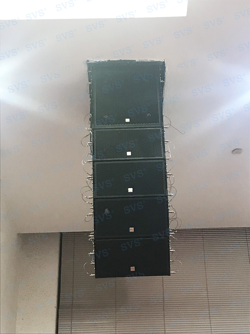 ,此次SVS为某石化公司打造大型多功能厅,因客户希望打造出高品质的声场效果,迅控为客户专门推荐了L系列线阵音箱,线阵音箱在主轴垂直平面指向性呈窄波束,能量叠加可以远距离辐射。弯曲的线性音箱组装可以让下端覆盖近区,中上端覆盖中区及远区,形成自近而远的等声压覆盖。线阵音箱采用专用数字处理器精准分频后由高阻尼的功率放大器推动各频段内部单元,让不同频段的声音,只在不同的单元特性范围里响应,各司其职,达到完美吻合度,解决了传统的音箱墙导致的声音干涉,浑浊,声压远近不均匀的难题。并配置全新数字调音台D2018,多种效果预设,让声音处理达到专业表演级标准。整体效果获得现场一致好评。