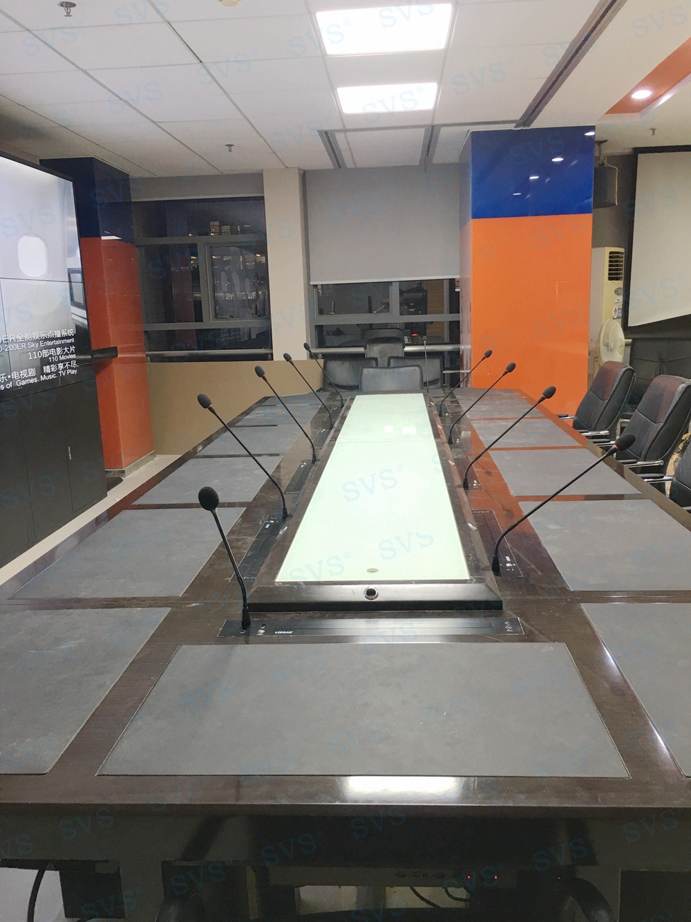 SVS此次为某信息公司打造一个无纸化会议室,设置10个主席位,为每个主席位配置带发言单元的桌面显示隐藏设备,轻松实现普通会议和多媒体会议的快速切换,简单便捷的使用方式,得到公司相关领导的一直好评。