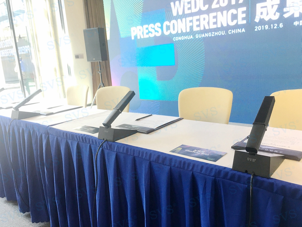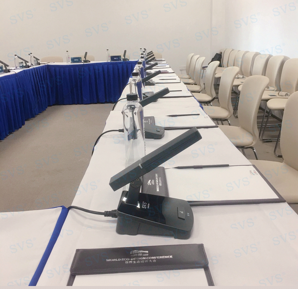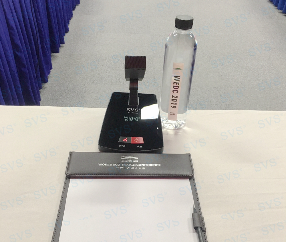 迅控此次为生态设计大会带来一款今年全新研制生产的,行业领先产品-OLED短唛发言单元SV-MT338系列会议系统。此款会议话筒是会议系统组网中的单元,分主席单元和列席单元,单元具有新型的OLED显示大屏,程序化显示时钟、发言计时、倒计时等内容,让会议更加高效、高质量完成。单元配置高档进口咪芯,配合数字处理电路,展现高保真、高灵敏度、远距离发言效果。咪杆采用超短铝合金方管,美观精致,时尚大方,搭配进口超心型指向咪芯,确保长期耐用无杂音。另外单元还具有自动摄像跟踪、多模式控制、自动关机等功能。