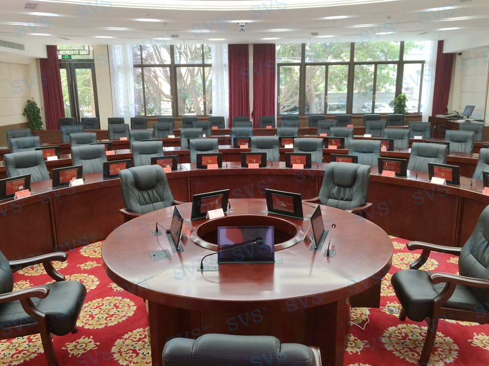 二、高级无纸化会议中心:会场可容纳60人进行无纸化会议,为60个席位均设置了桌面液晶升降器、嵌入式发言单元,会场设置1组主扩声,2组辅助扩声,配合无纸化会议系统,轻松实现无纸化会议现场。