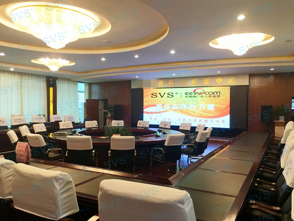,此次SVS为某市水务局打造一个调度指挥中心,中心设置指挥调度主席席位16席,为每一个席位配置时钟会议系统:SV-MT618A/B (点击了解更多):此款会议话筒是会议系统组网中的发言单元,分主席和列席单元,单元具有新型的OLED显示大屏,程序化显示时钟、发言计时、倒计时、申请服务、签到表决提示等内容,让会议更加高效、高质量完成。单元配置高档进口咪芯,配合数字处理电路,展现高保真、高灵敏度、远距离发言效果。咪杆采用螺旋式镀金接口与底座无缝结合,确保长期耐用无杂音。另外单元还具有自动跟踪、表决签到、服务申请,自动关机等功能。该产品是新时代会议行业里不可多得的创新型新品,组建系统简单,使用方便,功能强大,效果一流,适用于高要求、固定多位置需要发言的会议场所。并为数据员席位配置了桌面升降显示器,信号系统、扩声系统、会议系统配合中控系统,轻松实现信号互通转接,本地与外地信号的同步,视频会议现场调度等多种功能。