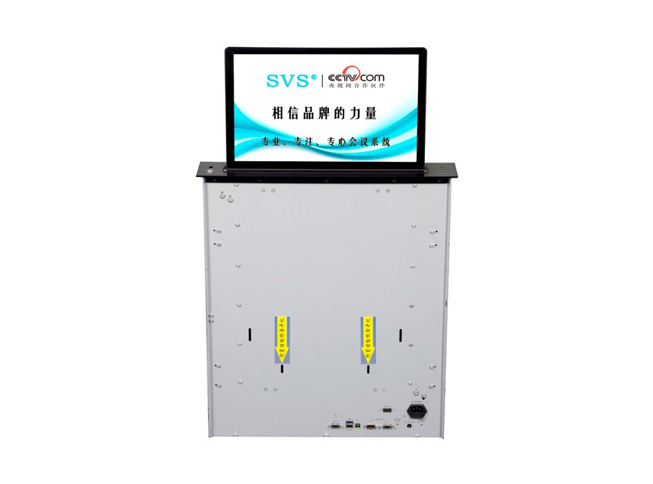 液晶屏升降器:SV-LCD17(点击了解更多)该产品为超薄液晶屏升降器,采用结构与屏体一体式设计,整机大部分采用铝合金材料,结合一次性模具成型的金属外壳,美观精致。产品动力采用直角叠加式齿轮与齿条啮合传递,直线轴承导向,完成垂直爬树式精准运动,外加自动开合门连杆结构,简单可靠,精度高,使开合动作完成后的运动面与固定台面始终保持平整。产品标配内嵌式17.3英寸全高清16:9液晶显示屏。 选配触摸板,支持10点触摸,即插即用。该产品是新时代无纸化会议或者视频会议室的主流产品,配合无纸化软件,可以实现众多功能,是与会人员之间信息化交互的重要工具。