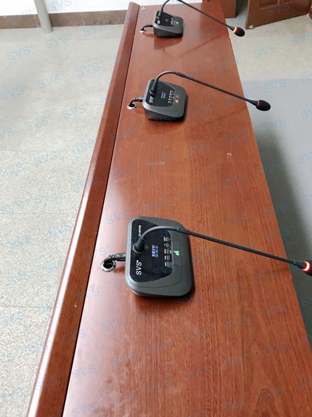 多媒体会议室:会场可容纳近50人进行会议,为每个席位配置一个 发言单元:MS-M90A/B(点击了解更多)此款话筒为桌面式流线型外观设计、可拨插镀金螺旋式接口咪杆;单元具有8芯插座用于系统“T”型连接,主席可以控制其他列席单元,并支持远程话筒开关控制; 采用进口可绕式鹅颈咪杆,柔软耐用;内置进口高保真、远距离拾音咪芯和防手机干扰电路,保证发言效果;另外单元还具有摄像跟踪、 轻触式带灯发言按键、自动关机等功能;