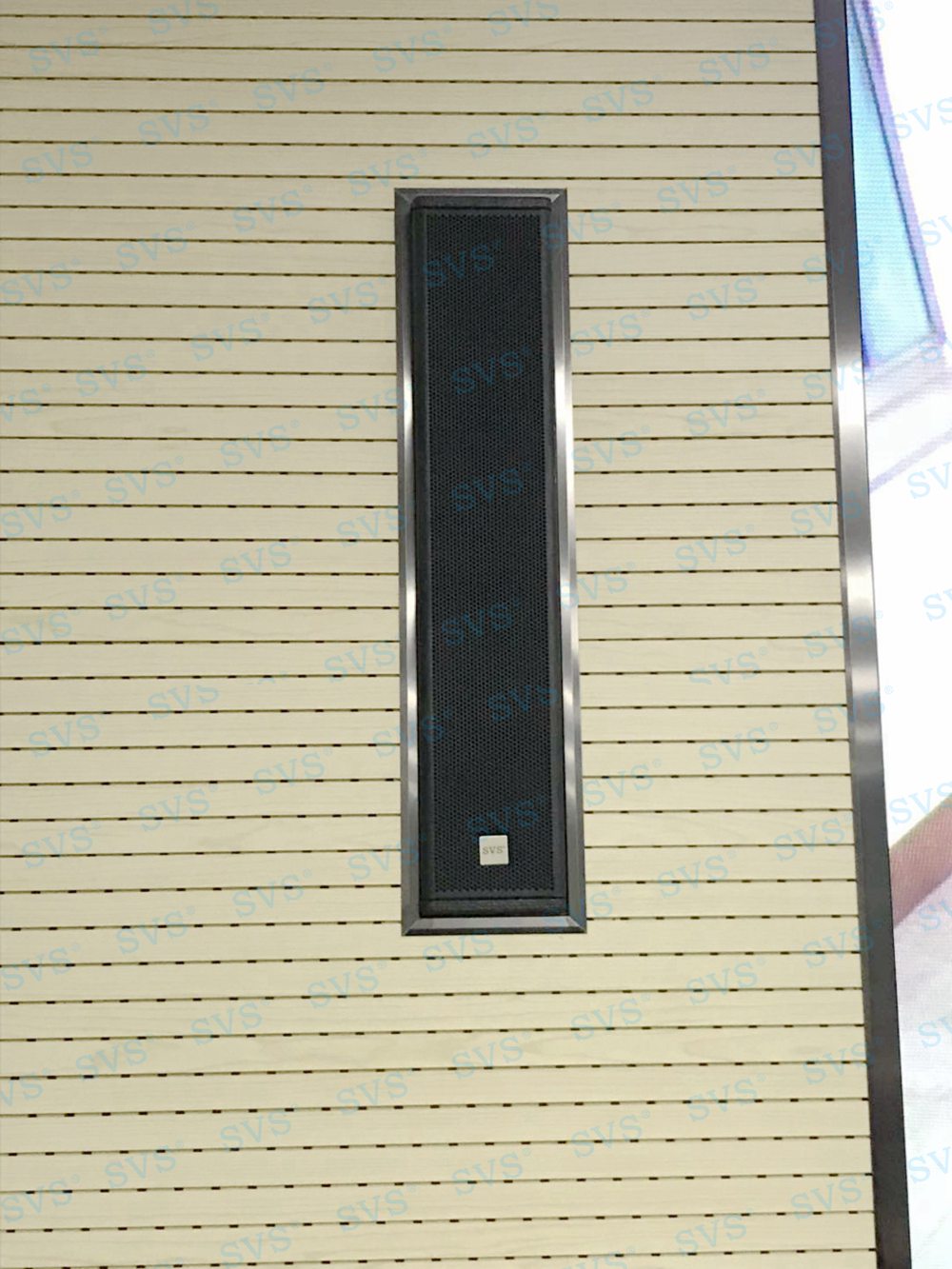 视频会议室:会场可容纳近70人进行会议,为了让会场达到更好的扩声效果,迅控为客户选择 阵列音箱:D2022(点击了解更多) D2022是一款紧凑型大功率的线性阵列音箱,采用进口知名品牌的2/4个4.5英寸的全频单元和1/2个3英寸高音单元、内置高精度分频器和芬兰高端桦木板材组成;该音箱单元采用3D新型安装方式,非传统的简单平面布置措施,保证了不同的单元声音输出声波不叠加能量,让发出的声音更加清晰,有效声场范围更广,也避免了声波能量抵消,自然达到高保真音质和高还原度的效果。因为体积小、功率大,可级联叠加和易安装等特点,被广泛应用于高端会议室、影院、报告厅和礼堂等场合。