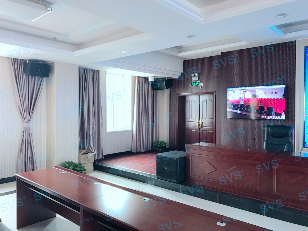,SVS为某市人民法院打造综合会议项目,项目包括2个会场,一个大型综合会议中心,一个无纸化会议中心。根据不同会场的要求配置不同的多媒体设备,涵盖音视频切换系统、中央控制系统、数字发言系统、专业扩声系统,并做好和显示系统的良好兼容,通过中控系统人机交互界面定制控制及使用方式,打造出一个集科学、高效、效果于一体的高级综合会议项目。