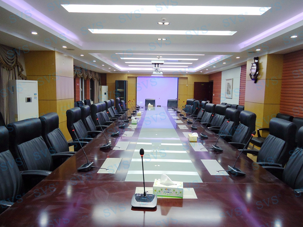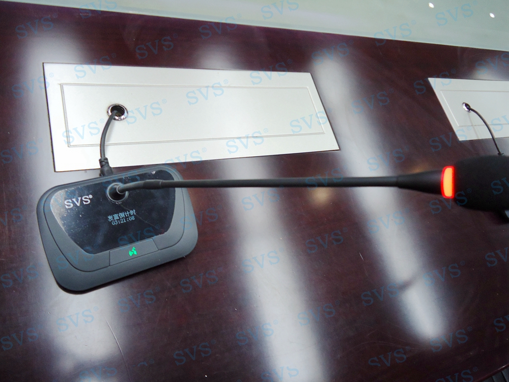 ,此次SVS为某规划局打造一个数字会议室,会场可容纳近50人进行会议,为会议桌设置了22个发言席,迅控为客户选择 会议话筒 SV-MT318AB(点击了解更多),此款会议话筒是会议系统组网中的单元,分主席单元和列席单元,单元具有新型的OLED显示大屏,程序化显示时钟、发言计时、倒计时等内容,让会议更加高效、高质量完成。单元配置高档进口咪芯,配合数字处理电路,展现高保真、高灵敏度、远距离发言效果。咪杆采用螺旋式镀金接口与底座无缝结合,确保长期耐用无杂音。另外单元还具有自动摄像跟踪、多模式控制、自动关机等功能。该产品是新时代会议行业里不可多得的创新型新品,组建系统简单,使用方便,功能强大,效果一流,适用于高要求、固定多位置需要发言的会议场所。