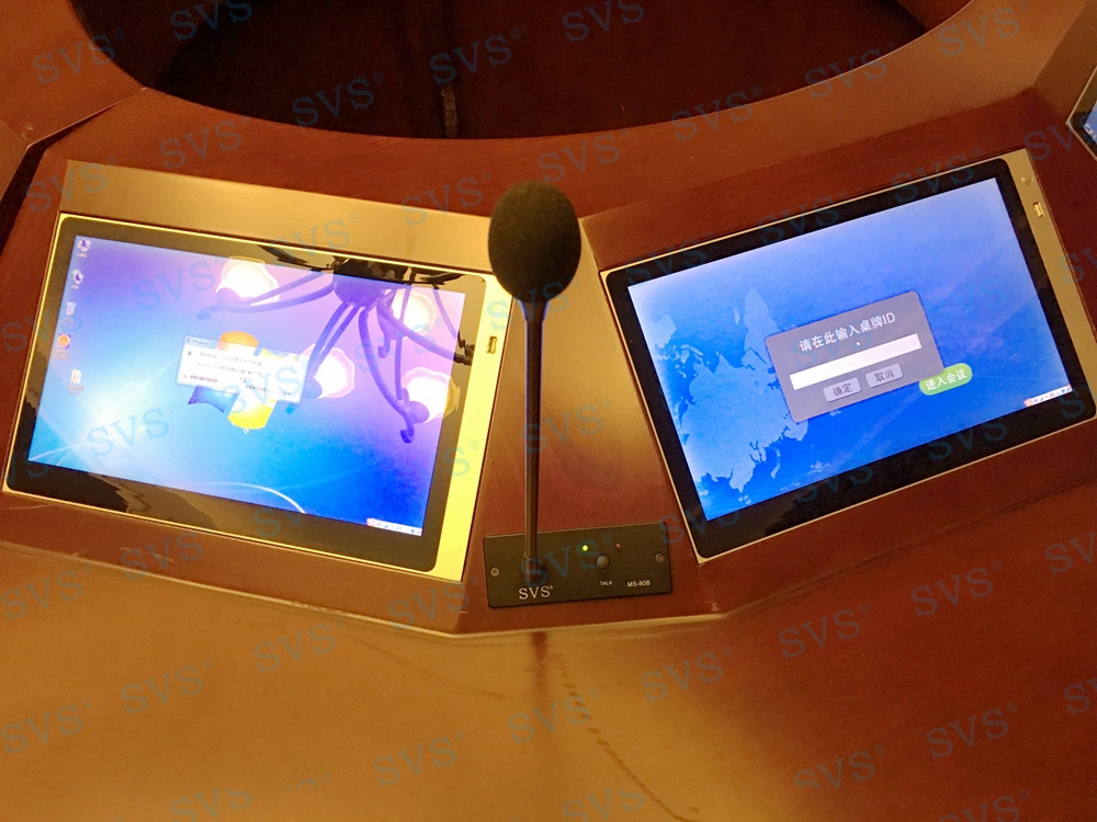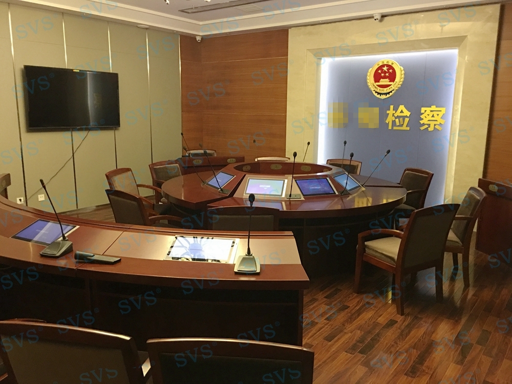 SVS为某检察院打造一个综合多媒体项目,项目包括一个无纸化会讨中心、一个圆形会议室,两个会场根据环境、使用用途不同等选择和配置了不同的会议设备,打造出来最佳适用产品及效果。
