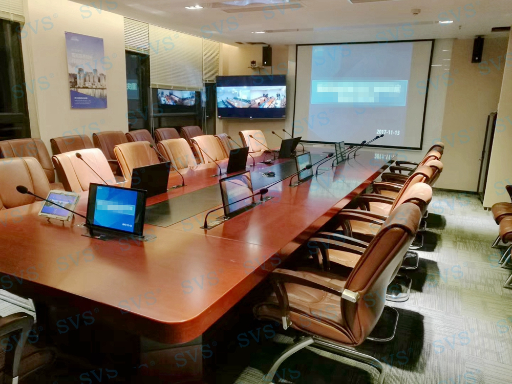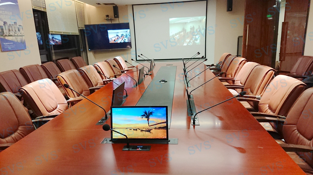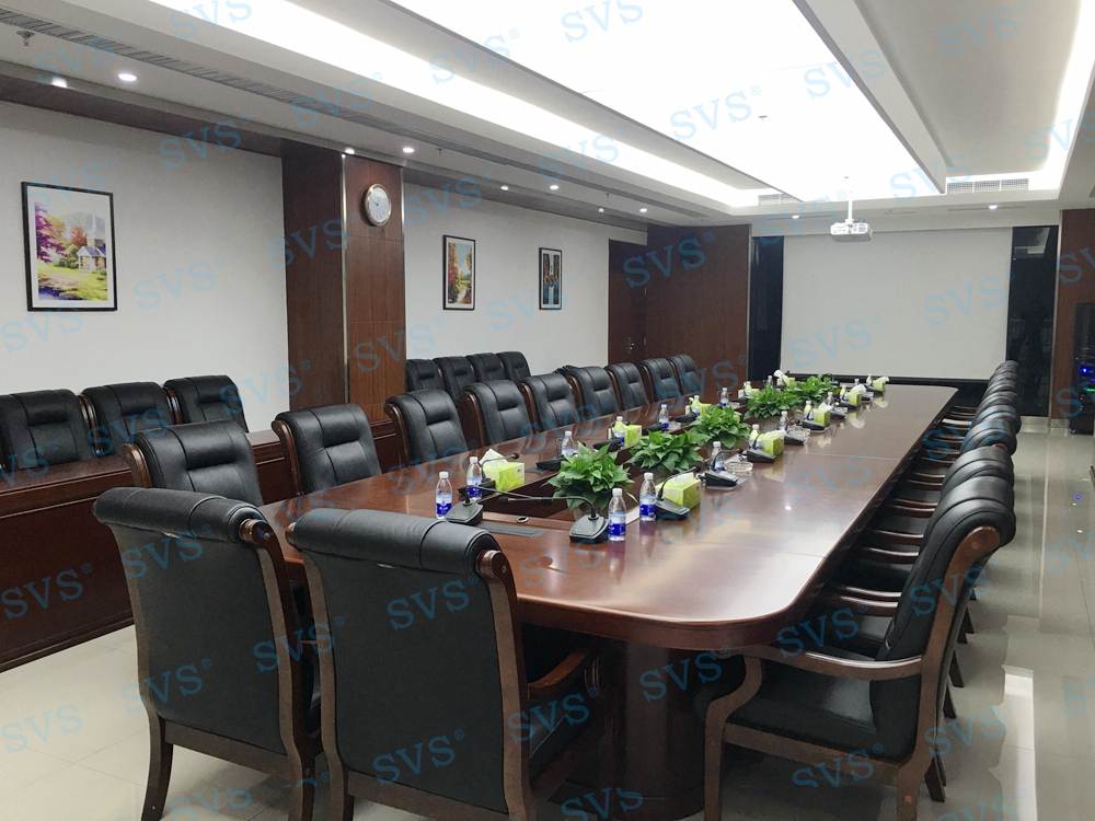 SVS为某酒店打造一个数字会议厅,会场可同时容纳近30人进行会议,会场具备多种会议模式选择,包括普通会议、视频会议、茶话会、研讨会等多种使用用途,迅控对于每个用途都有不同的使用配置,从不同发言单元、不同扩音单元等方面入手,为不同的环境打造出专属的现场效果,并通过人机交互终端,轻松实现模式切换。