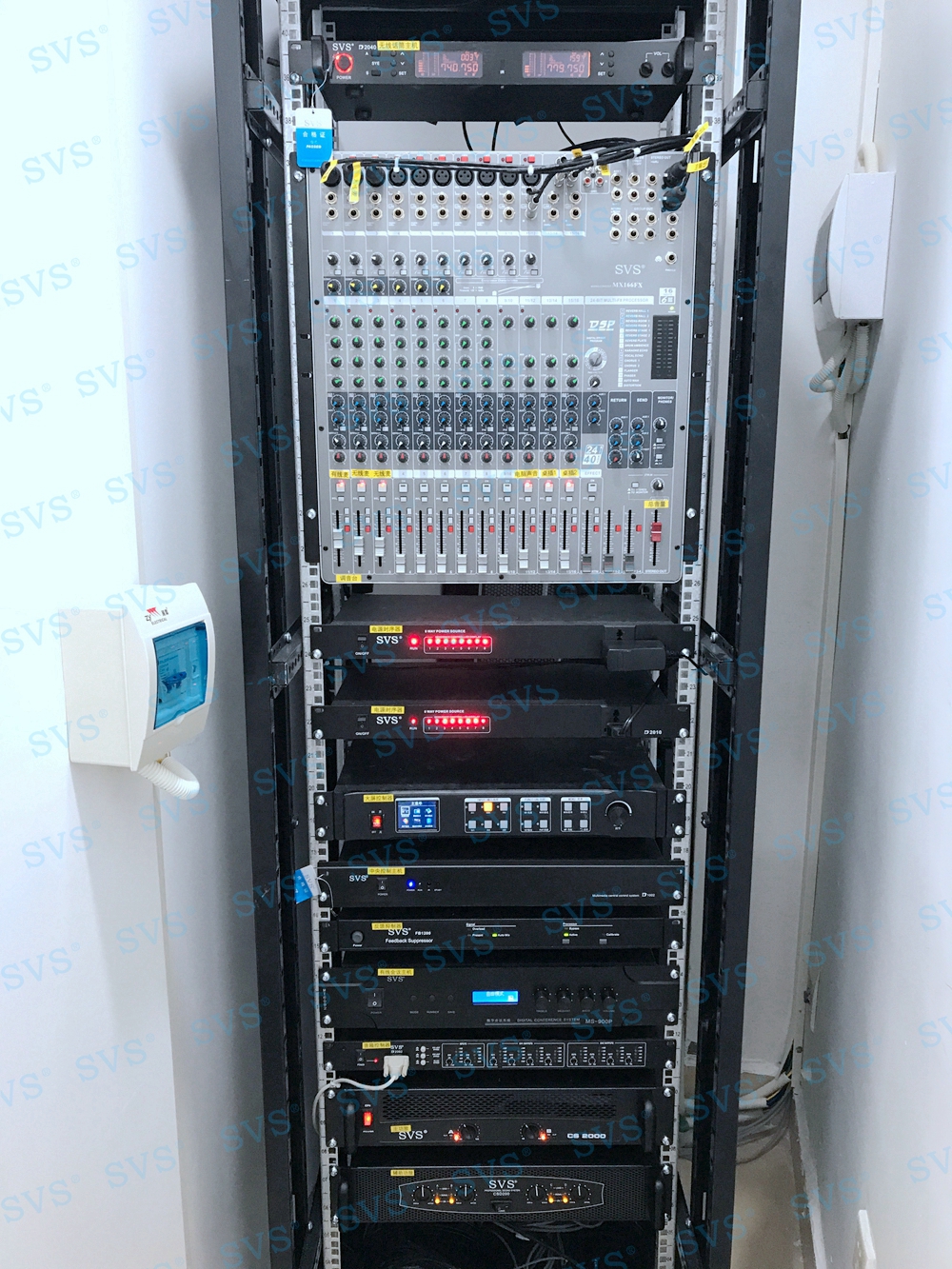 ,SVS迅控此次为某检察院打造一个无纸化会议室,作为院方的多方会客中心、办案讨论中心、学习培训中心等多种用途,会场设置了20个会谈位,每一个位置都设置了独立的显示系统、发言系统,可及时高效的查看会议资料,共享会议文件,传递会议信息等,采用阵列音箱和全频音箱的配合方式,将会场的音效提升到了新的层次,从画质、音质两方面给与会人员带来全新的高品质体验,得到院方领导的高度评价。