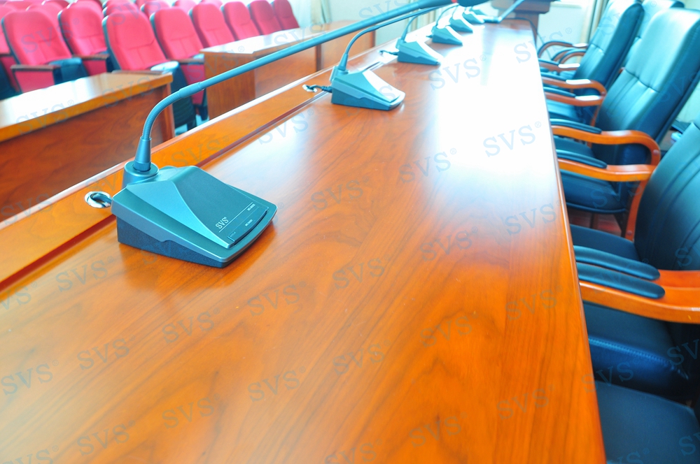 ,SVS迅控为某市司法局打造一个数字多功能厅,会场可一次性容纳近60人进行会议,会场可可视频会议室、多方通话会议室、新闻发布中心、培训中心、报告厅等多种用途使用,为了方便多种用途,且打造高品质、高保真的会议效果,特为会场配置无线和有线相互搭配的双鹅颈发言系统,配合无缝高清混合矩阵,综合智能化管理会场的输入输出信号,让远程会议轻松实现。