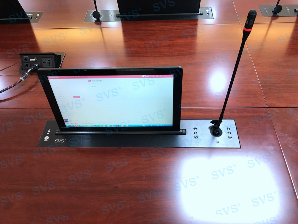 ,SVS话筒及液晶屏一体升降器是应时下主流的无纸化会议室而生,自研发开始就备受客户关注,经过专业的设计和研发,问世后得到业界及用户的高度认可,产品从外观和实用性都让会议室的整体环境提升到了一个新的层次,相信很快将成为无纸化会议系统中不可或缺的亮点。
