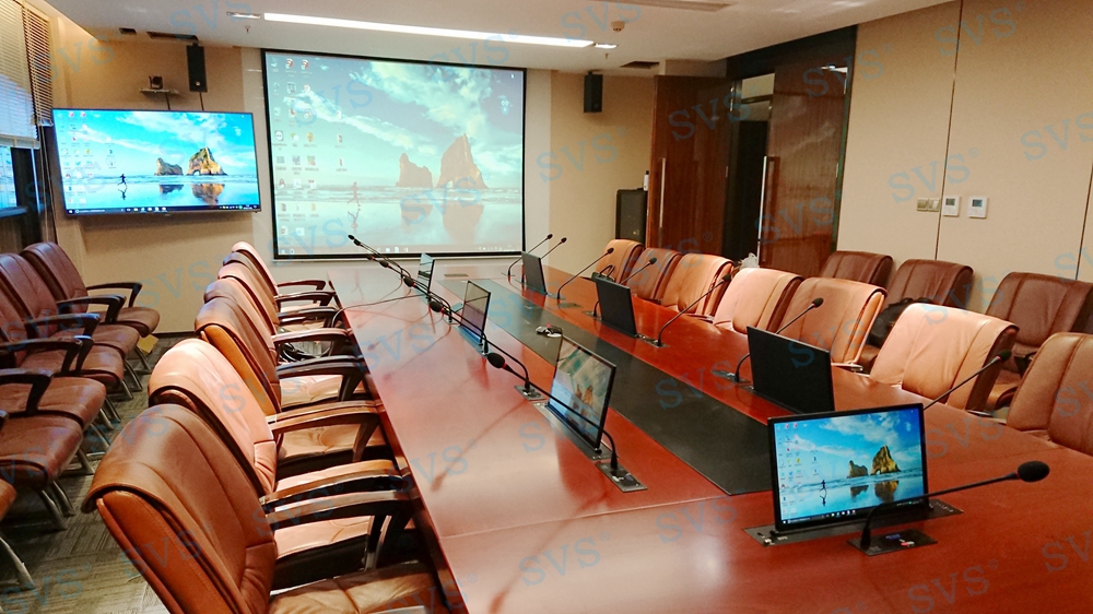 ,此次SVS迅控为某集团公司打造一个无纸化会议室,会场作为高端视频会议室打造,各个方面迅控都为客户选择集高端、实用、美观、高性价比为一体的产品,从整体感官和使用效果上,都得到客相关领导的高度认可。