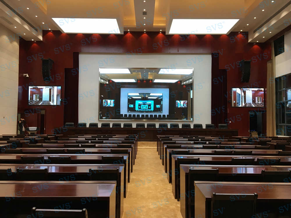线阵音箱具备在主轴垂直平面指向性呈窄波束,能量叠加可以远距离辐射。而线性列的弯曲部分下端覆盖近区,形成自近而远的覆盖的特点,以其实现便捷及高性价比成为大型会场的首选扩声方式。此次SVS为贵州省某党校打造大型多功能厅,会场要求同时容纳近300人进行会议,会场对于音频及视频都有较高要求,迅控为客户推荐SVS L系列线阵音箱(点击了解更多),该音箱采用芬兰桦木实木与碳钢型材结合,达到高强度,多音箱级联组合所需要的大功率需求。配合OLED时钟会议系统(点击了解更多),高敏度高还原的拾音效果,配合高品质的扩声效果,整套会议系统得到用户的高度评价。