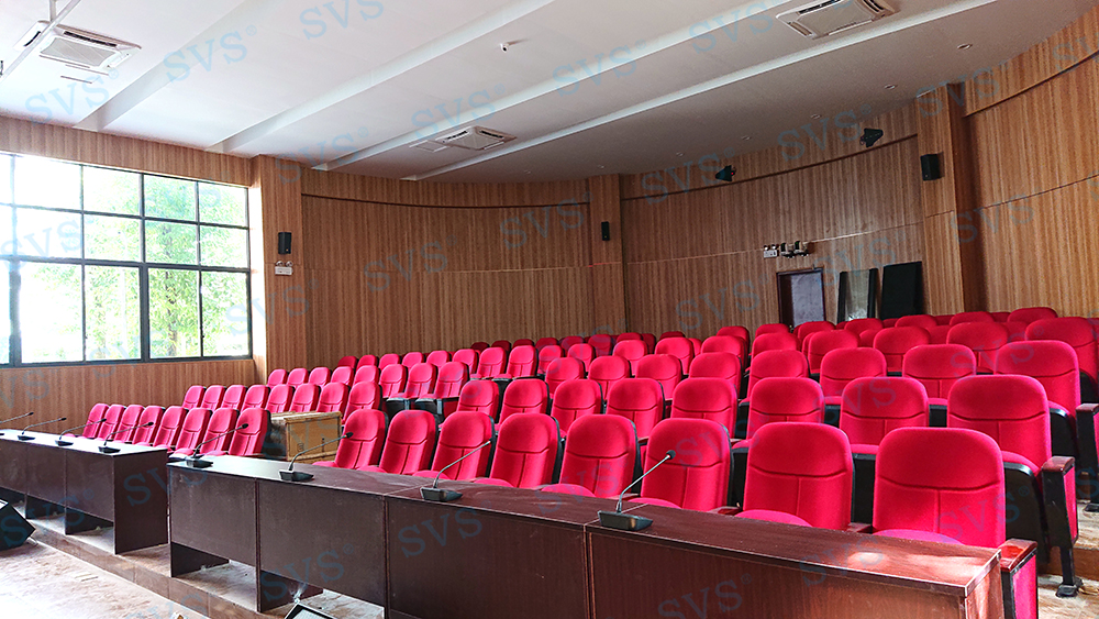 ,此次SVS为某中学打造数字化多功能厅,会场可作为演艺中心、报告厅、大型会议厅等,因客户对声场效果要求较高,迅控为客户打造设计出专业的扩声系统、发言系统、中控系统、会议系统,各个系统相互结合,互联互通,轻松提高会议效率,打造出集会议效果与演绎效果为一体的专属声场,最终效果获得现场一致好评。