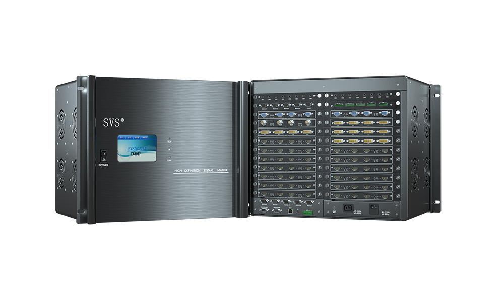 ,此次SVS为某税务局打造远程视频会议中心,会场可容纳近210人进行会议。会场选用信号共享器D3007,该系列高清信号共享器采用信号板卡与母体机插卡式分离设计,高性能高清音视频和控制信号处理设备,提高了视频系统的兼容性、稳定性,也提升了视频显示质量,真正实现了系统按需定制,轻松实现超清、高清、标清等多格式音视频信号输入、输出的无缝切换。高清信息时代,图文视频已得到普及性的发展,该设备已成为新时代会议室、监控中心、指挥中心、展览馆等场所必不可少的重要设备。中控系统与信号系统相互配合,轻松实现多路信号和综合智能设备的控制与管理。