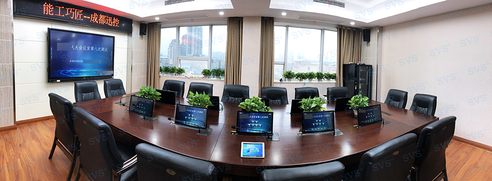 ,此次SVS为某县人大打造无纸化会议室,为客户推荐使用液晶屏升降器SV-LCD17,配合专业无纸化服务器SV-MP200B,核心程序采用无人值守模式,开机后台自动运行;支持应用服务、消息服务和媒体服务监控功能;支持系统管理功能、人员管理功能、建立会议界面、会议资料管理功能、会议投票等功能。另选阵列音箱D2023,此款音箱因为体积小、功率大,可级联叠加和易安装等特点,被广泛应用于高端会议室、影院、报告厅和礼堂等场合。轻松实现普通会议、无纸化会议、多媒体会议等多种会议模式的切换。整体效果获得现场一致好评。