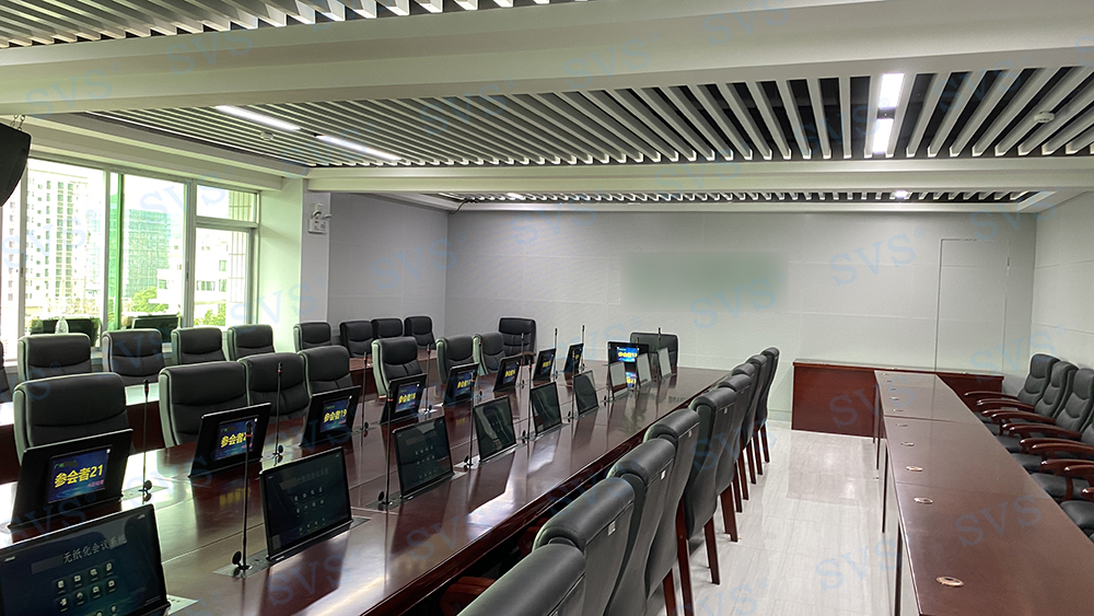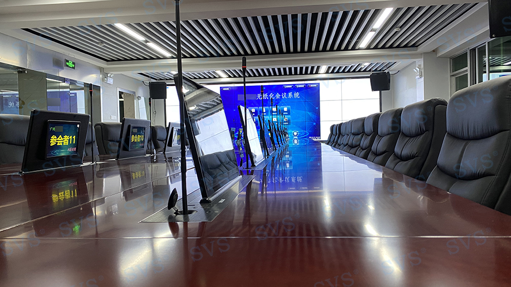 ,近日SVS为某融媒体中心打造高端无纸化会议室,会场共设24个席位,为每个席位配置了带话筒液晶屏升降器SV-LCD17(A1/B1),配合无纸化软件的使用,轻松实现普通会议、无纸化会议、多媒体会议等多种会议模式的切换。另选用分布式信号传输系统,该系统基于网络,集成了先进的音视频信号编解码传输及无缝切换技术、智能控制通讯技术、KVM切换传输技术、高清图像处理技术及数字网络通信技术等融为一体,可以方便地将网内各区域的音视频信号、控制信号及电脑KVM信号灵活接入系统,该系统为用户打造一个先进智能、高效稳定的信号综合管理平台。