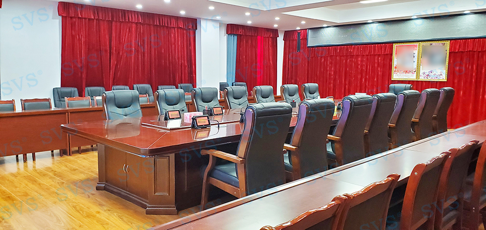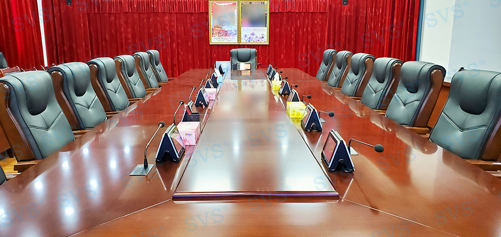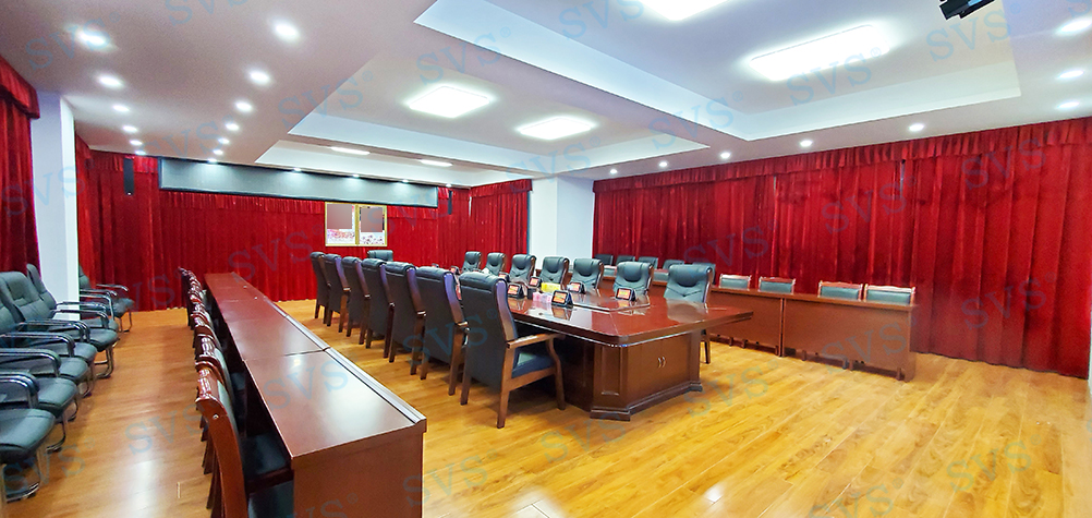 ,此次SVS为某市卫健委打造数字无纸化会议中心,会场选用嵌入式发言单元+双面电子桌牌,再搭配线性阵列音箱,使得会场声音更加清晰,有效声场范围更广,也避免了声波能量抵消,自然达到高保真音质和高还原度的效果。中控系统、会议系统、扩声系统、发言系统的相互结合,轻松提高会议效率,打造出一个具有先进性和实用性的数字无纸化会议中心。