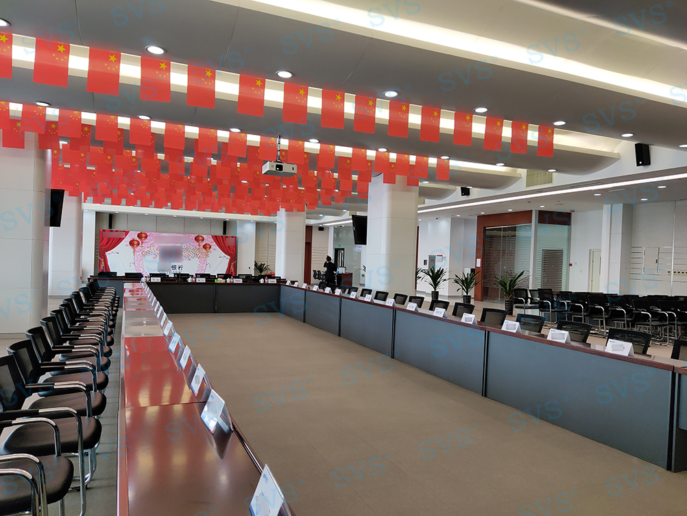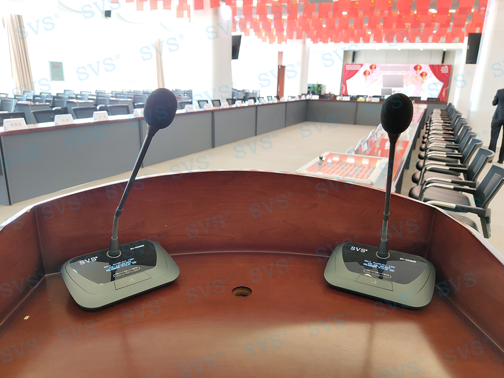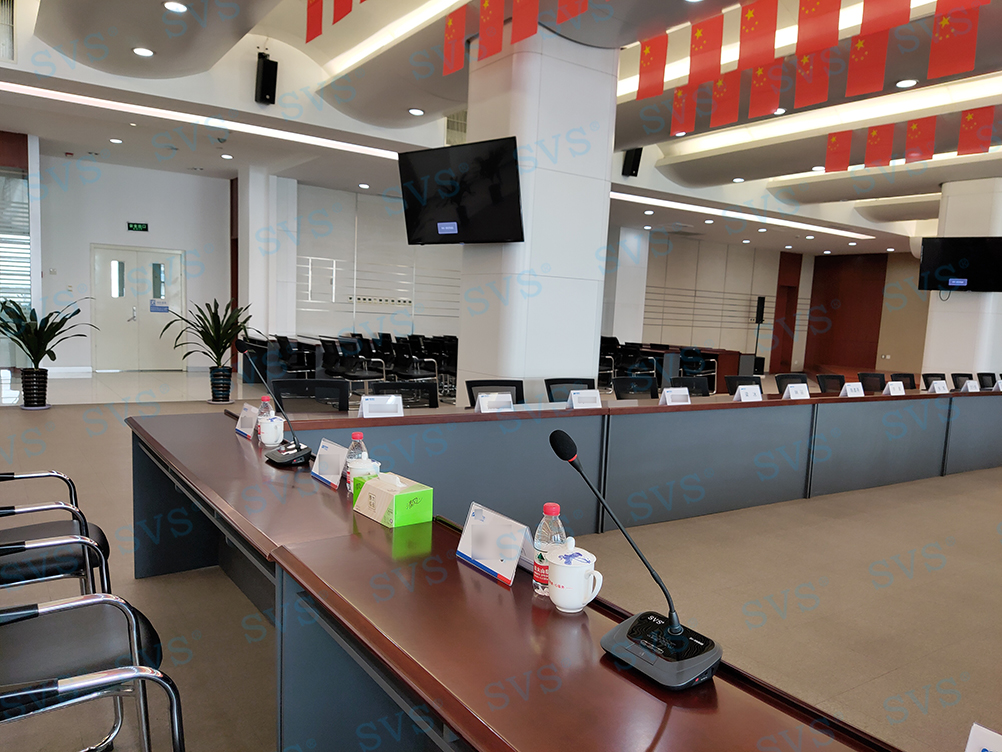 ,此次SVS为某银行打造数字化会议项目,为客户推荐使用新型会议系统单元SV-WM90A/B,内有液晶屏,可显示电量、欠压报警、频段信息、信号强弱、开关状态等信息,一目了然;进口高保真、远距离拾音咪芯和防手机干扰电路,保证发言效果。各个系统互联互通,搭配专业音箱D2022、D2023、D2122,其中D2022、D2023是一款紧凑型大功率的线性阵列音箱。采用3D新型安装方式,非传统的简单平面布置措施,保证了不同的单元声音输出声波不叠加能量,让发出的声音更加清晰,有效声场范围更广,也避免了声波能量抵消,自然达到高保真音质和高还原度的效果。因为体积小、功率大,可级联叠加和易安装等特点,被广泛应用于高端会议室、影院、报告厅和礼堂等场合。整体效果获得现场一致好评!