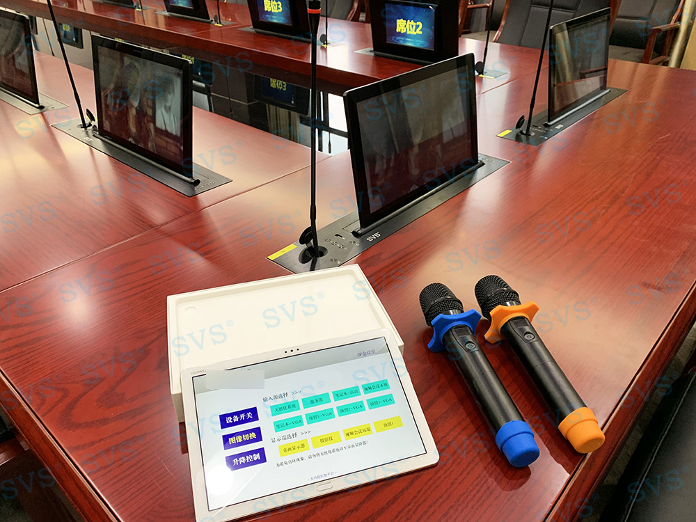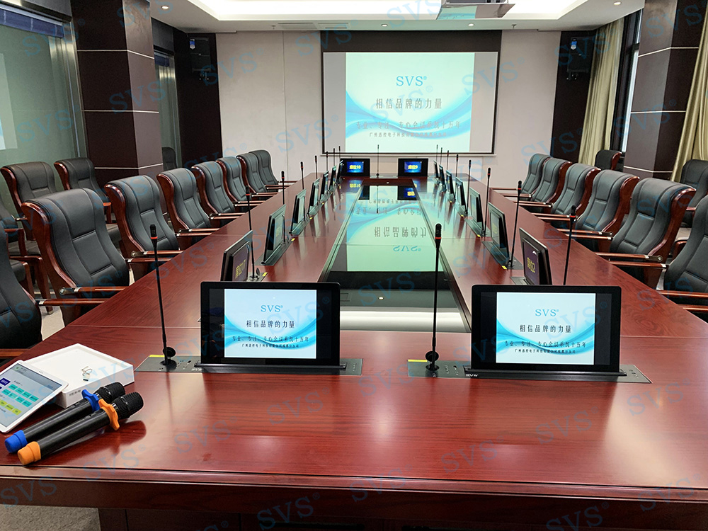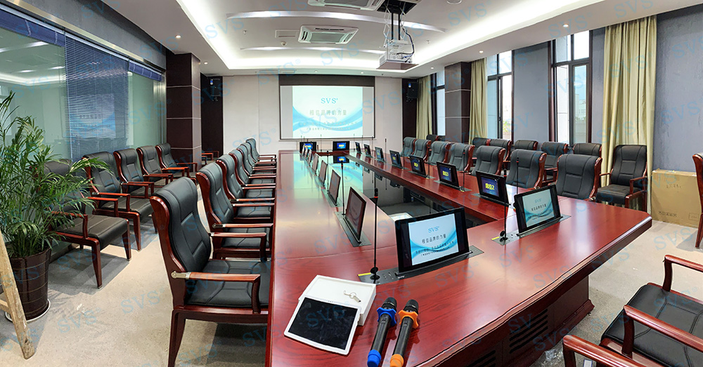此次SVS为农商银行某支行打造无纸化会议室(双屏升降器+无纸化系统),会场共设18个席位。为客户推荐使用带话筒双屏升降器SV-LCD17(A1/B1),搭配上SVS无纸化会议系统,轻松实现普通会议、无纸化会议、多媒体会议等多种会议模式的切换。整体效果获得现场一致好评。