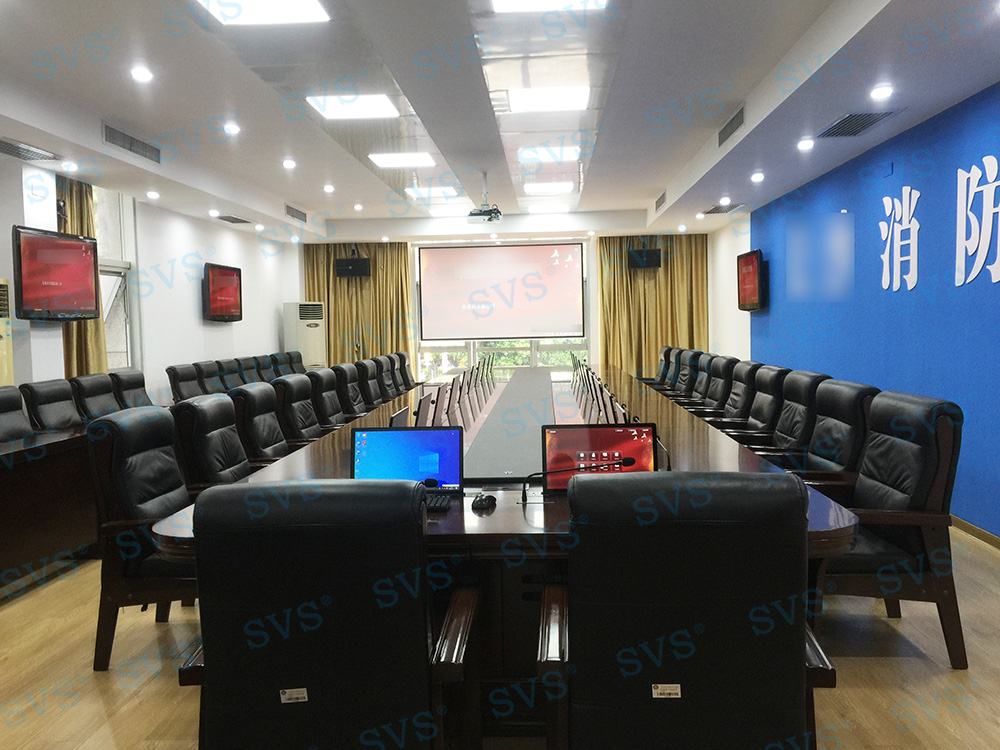 此次SVS为某消防局打造应急救援指挥中心,迅控为中心打造了全套多媒体系统,其中高清信号共享器D3007提高了视频系统的兼容性、稳定性,也提升了视频显示质量,同时对系统调试、售后维护和升级改造等节约了时间和成本,真正实现了系统按需定制,轻松实现超清、高清、标清等多格式音视频信号输入、输出的无缝切换。会场共设22个席位,为每个席位配置了液晶屏升降器SV-LCD17,配合无纸化软件,提供了强大的会议管理功能,为与会人员提供一个多功能、全方位、保密性的无纸化会议平台。无纸化系统配合高清信号共享器,实现多路视频信号的无缝切换及显示,为救援工作提供了更好的指挥和信息发布平台。