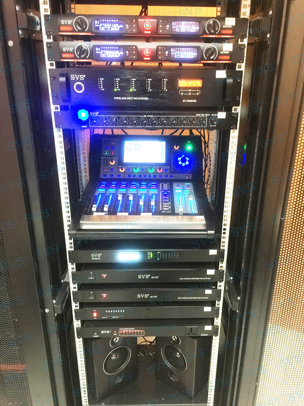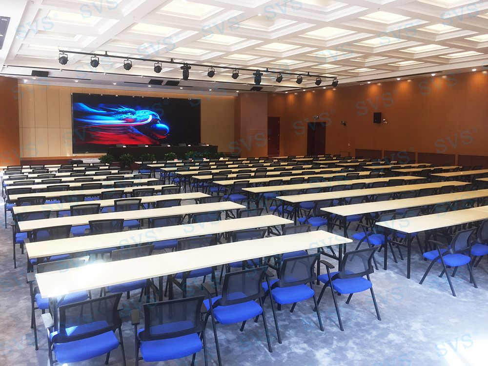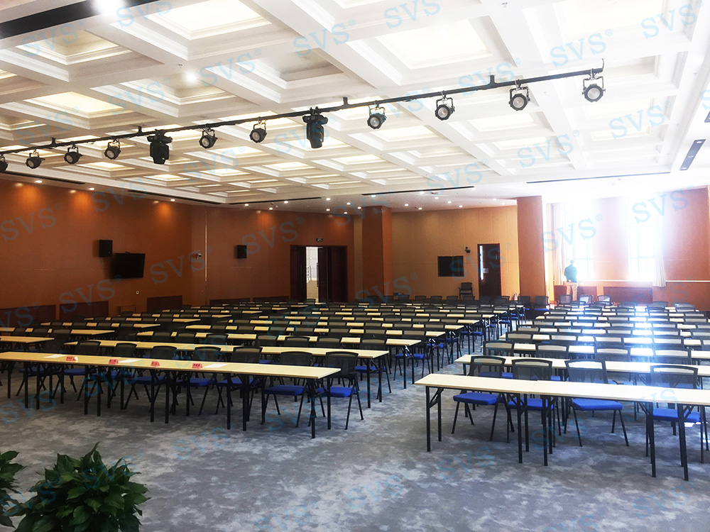 SVS此次为某大学打造大型会议中心,会场可作为大型会议、新闻发布、大型培训等多种用途使用,现场可容纳200余人进行会议,客户对声场要求极高。因此为客户推荐使用全新数字调音台D2018,强大的输入输出接口,满足各类场景的使用;科技感外观、人体工程学设计,满足最佳操作视角;多功能切换LED指示灯条;多种效果预设,让声音处理达到专业表演级标准。另发言系统使用SV-WM90A/B,让会议更加高效、高质量完成。现场打造出的高品质的集会议、新闻发布等多种声场于一体的高品质音效,得到客户的高度认可。