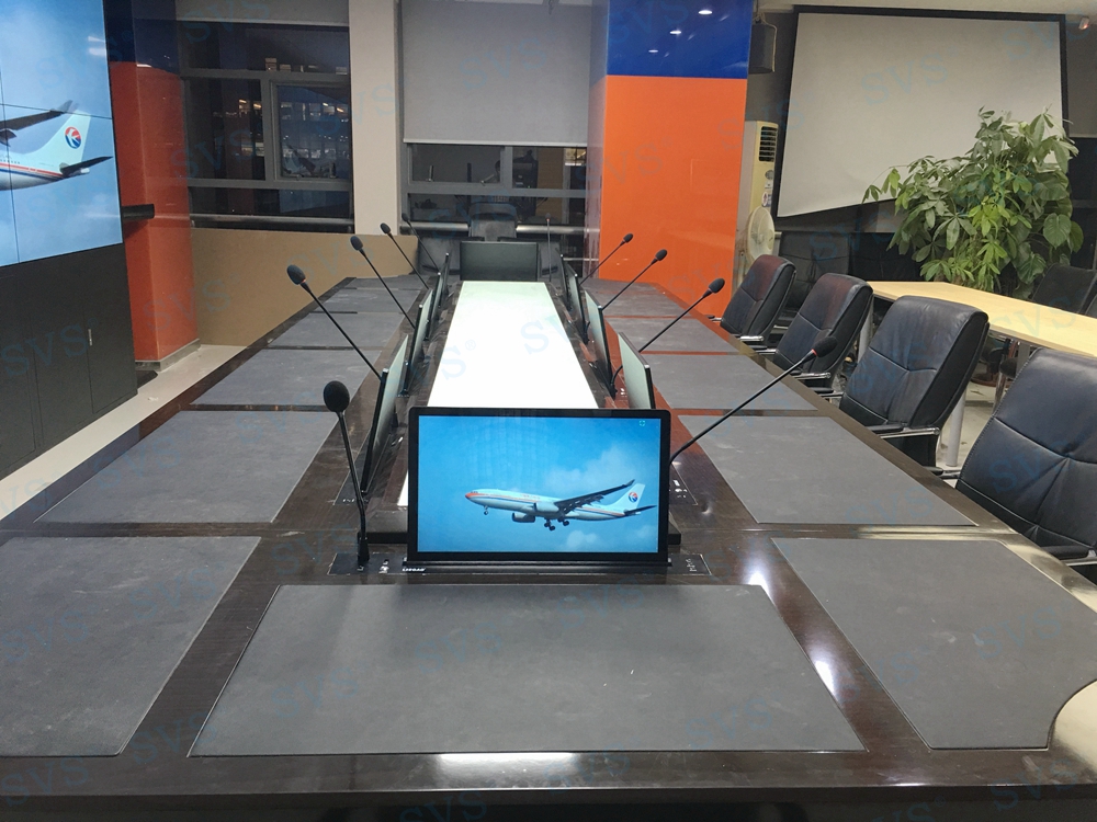 SVS此次为某信息公司打造一个无纸化会议室,设置10个主席位,为每个主席位配置带发言单元的桌面显示隐藏设备,轻松实现普通会议和多媒体会议的快速切换,简单便捷的使用方式,得到公司相关领导的一直好评。