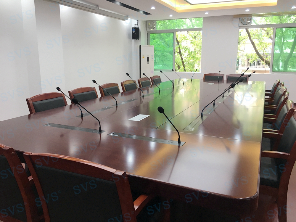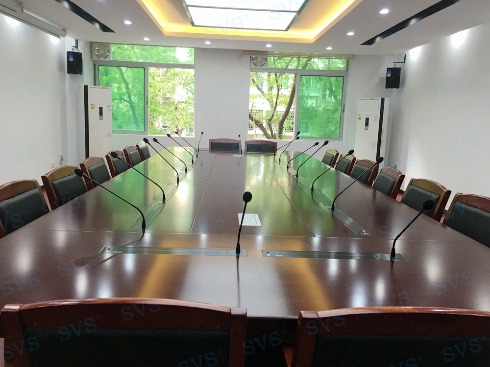 SVS此次为某电力建设公司打造一个无纸化会议室,会场一共设16个坐席,设置了16个桌面显示器隐藏+发言系统,方便每个席位第一时间参与会议内容和操作,并根据现场环境,布置了专业会议音箱,打造出专属会议声场,得到相关领导的一致认可。