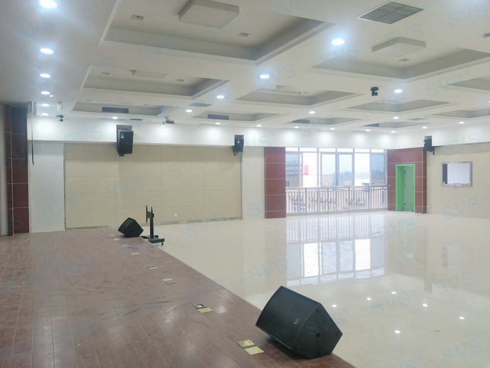 SVS为某医院打造一个多功能厅,会场前后都设置了播放设备,并为会场打造出专属的表演级音箱产品。