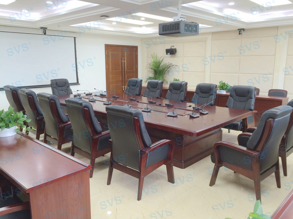 四、小型会议室:会场可容纳20人进行会议,为全部席位设置了数字发言系统,会场设置2组主扩声,并配置会议跟踪系统。