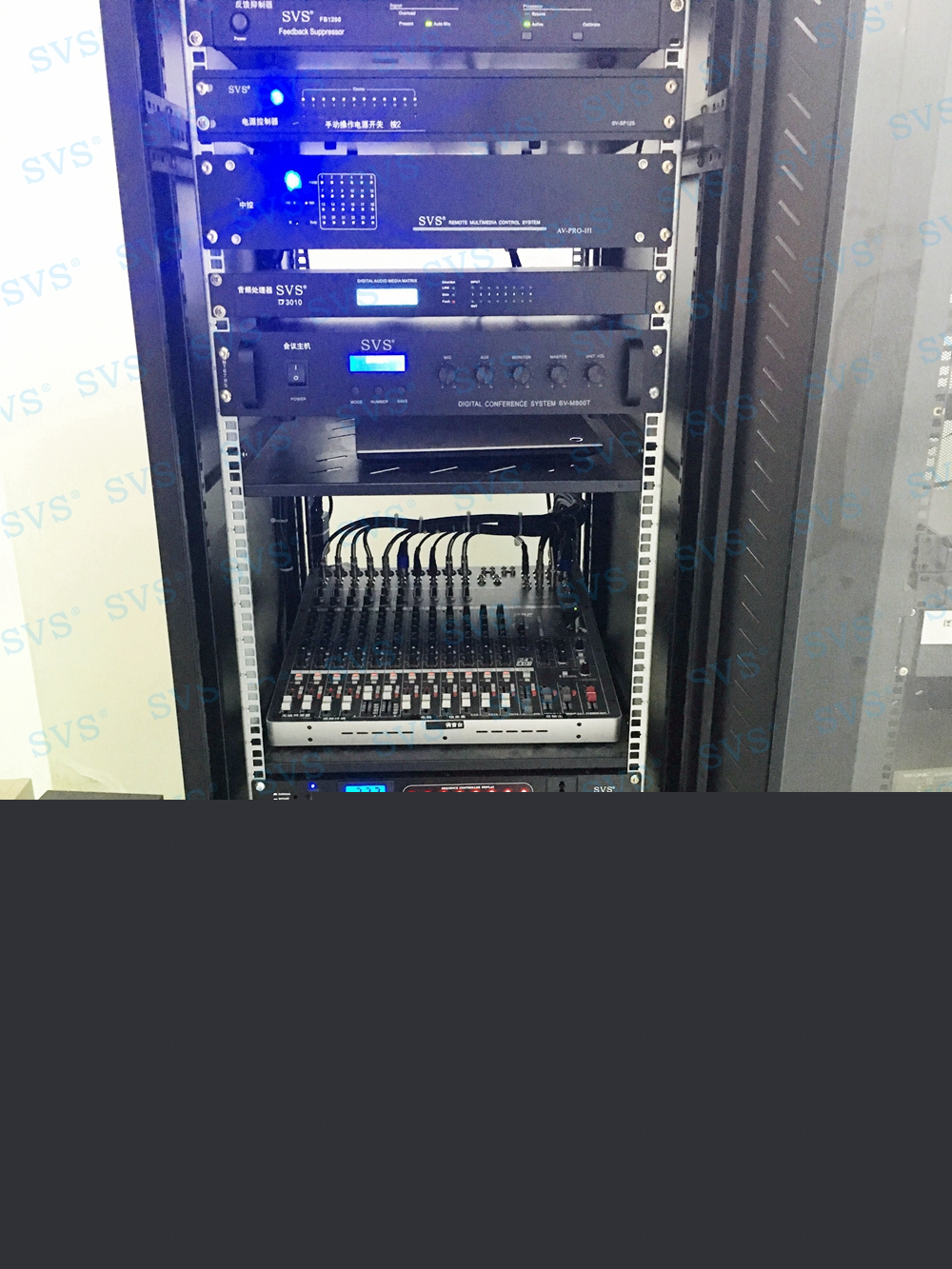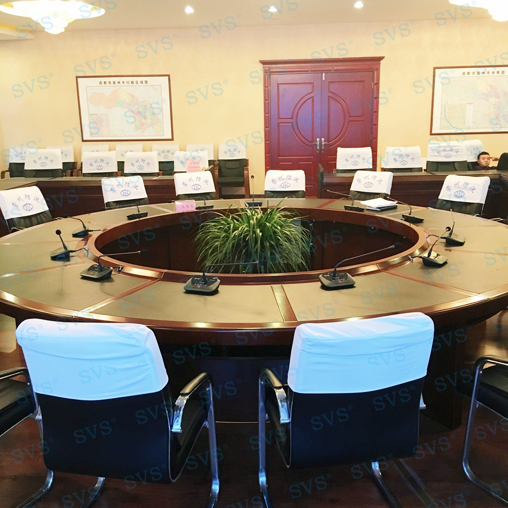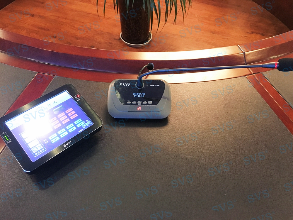 ,此次SVS为某市水务局打造一个调度指挥中心,中心设置指挥调度主席席位16席,为每一个席位配置时钟会议系统:SV-MT618A/B (点击了解更多):此款会议话筒是会议系统组网中的发言单元,分主席和列席单元,单元具有新型的OLED显示大屏,程序化显示时钟、发言计时、倒计时、申请服务、签到表决提示等内容,让会议更加高效、高质量完成。单元配置高档进口咪芯,配合数字处理电路,展现高保真、高灵敏度、远距离发言效果。咪杆采用螺旋式镀金接口与底座无缝结合,确保长期耐用无杂音。另外单元还具有自动跟踪、表决签到、服务申请,自动关机等功能。该产品是新时代会议行业里不可多得的创新型新品,组建系统简单,使用方便,功能强大,效果一流,适用于高要求、固定多位置需要发言的会议场所。并为数据员席位配置了桌面升降显示器,信号系统、扩声系统、会议系统配合中控系统,轻松实现信号互通转接,本地与外地信号的同步,视频会议现场调度等多种功能。