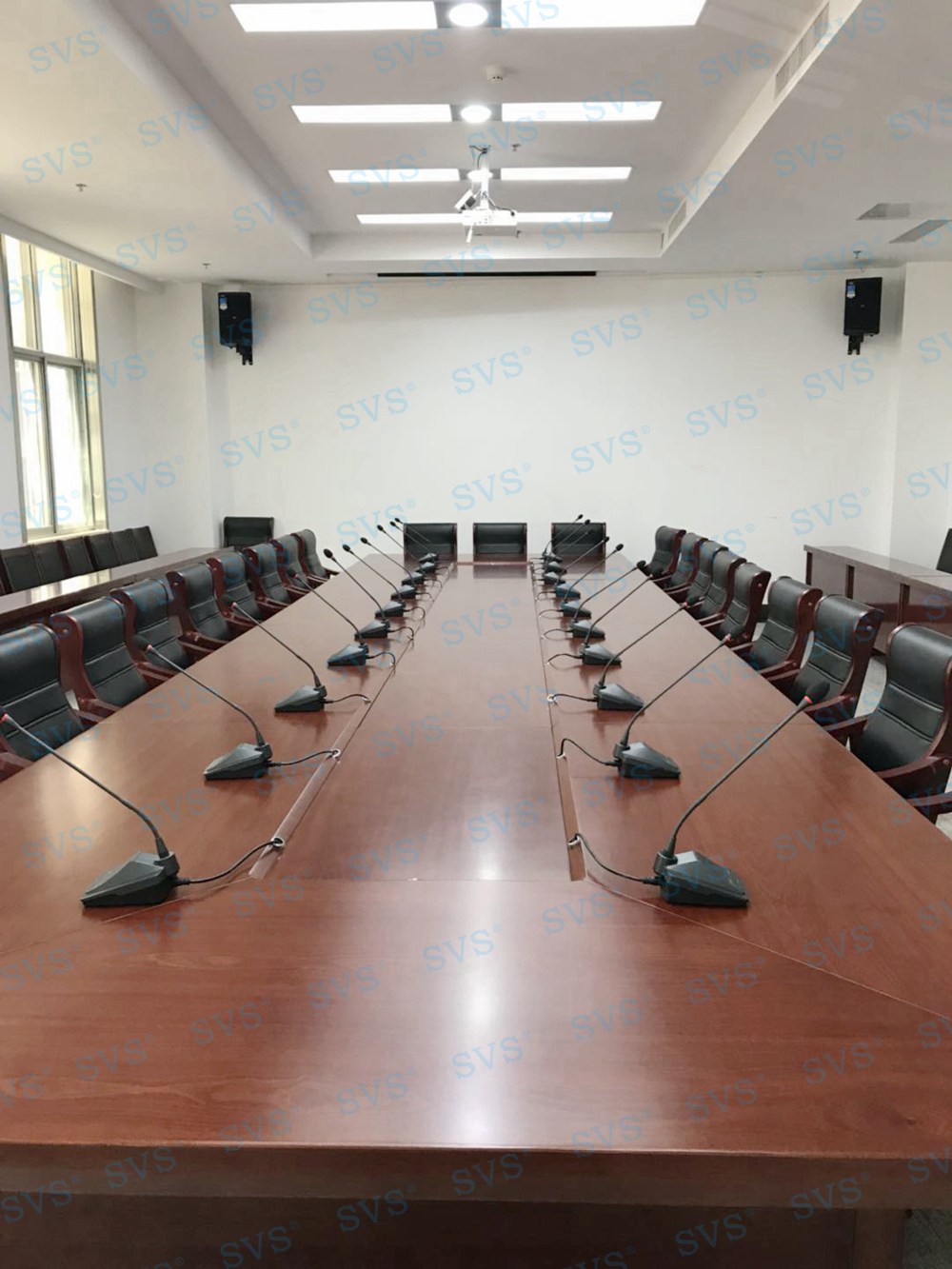 多媒体会议室:会场可容纳近50人进行会议,为每个席位配置一个 发言单元:MS-M90A/B(点击了解更多)此款话筒为桌面式流线型外观设计、可拨插镀金螺旋式接口咪杆;单元具有8芯插座用于系统“T”型连接,主席可以控制其他列席单元,并支持远程话筒开关控制; 采用进口可绕式鹅颈咪杆,柔软耐用;内置进口高保真、远距离拾音咪芯和防手机干扰电路,保证发言效果;另外单元还具有摄像跟踪、 轻触式带灯发言按键、自动关机等功能;