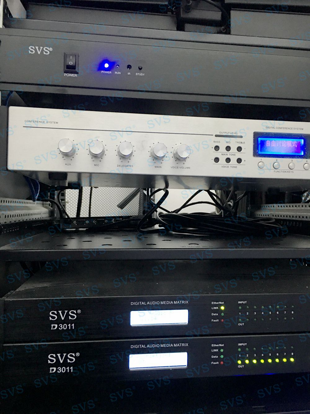 项目产品推荐:音频矩阵 D3011(点击了解更多产品详情)本数字音频处理器是一台通用型可编程数字音频处理器,最大支持 16 MIC/ Line 输入,支持48V幻象供电,16个平衡线路输出。DSP具有强大的处理能力,每个输入通道均有反馈抑制器、噪声门、高通滤波、低通滤波、1s延时器、压限器、16 段均衡(PEQ/Hi ghShelf / LowShelf)、每个输出通道具有高通滤波、低通滤波、16 段均衡(PEQ/Hi ghShelf/ LowShelf)、压限器、延时器。整机全矩阵混音。内置正弦波、粉红噪声、白噪声信号发生器。可存储 32 个场景预设,可自定义标签,前面板 LCD显示屏显示 IP 地址、当前预设状态、当前运行时间,1个TCP/ IP 通讯端口,1 个RS-232通讯端口,1个RS-485 通讯端口,开放第三方控制协议。