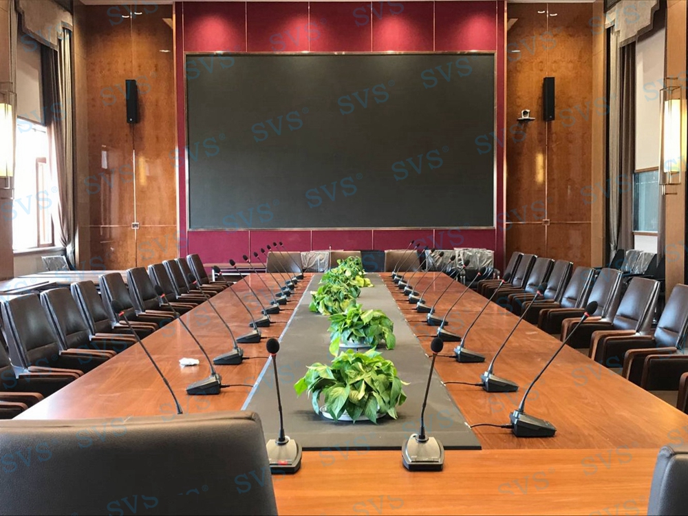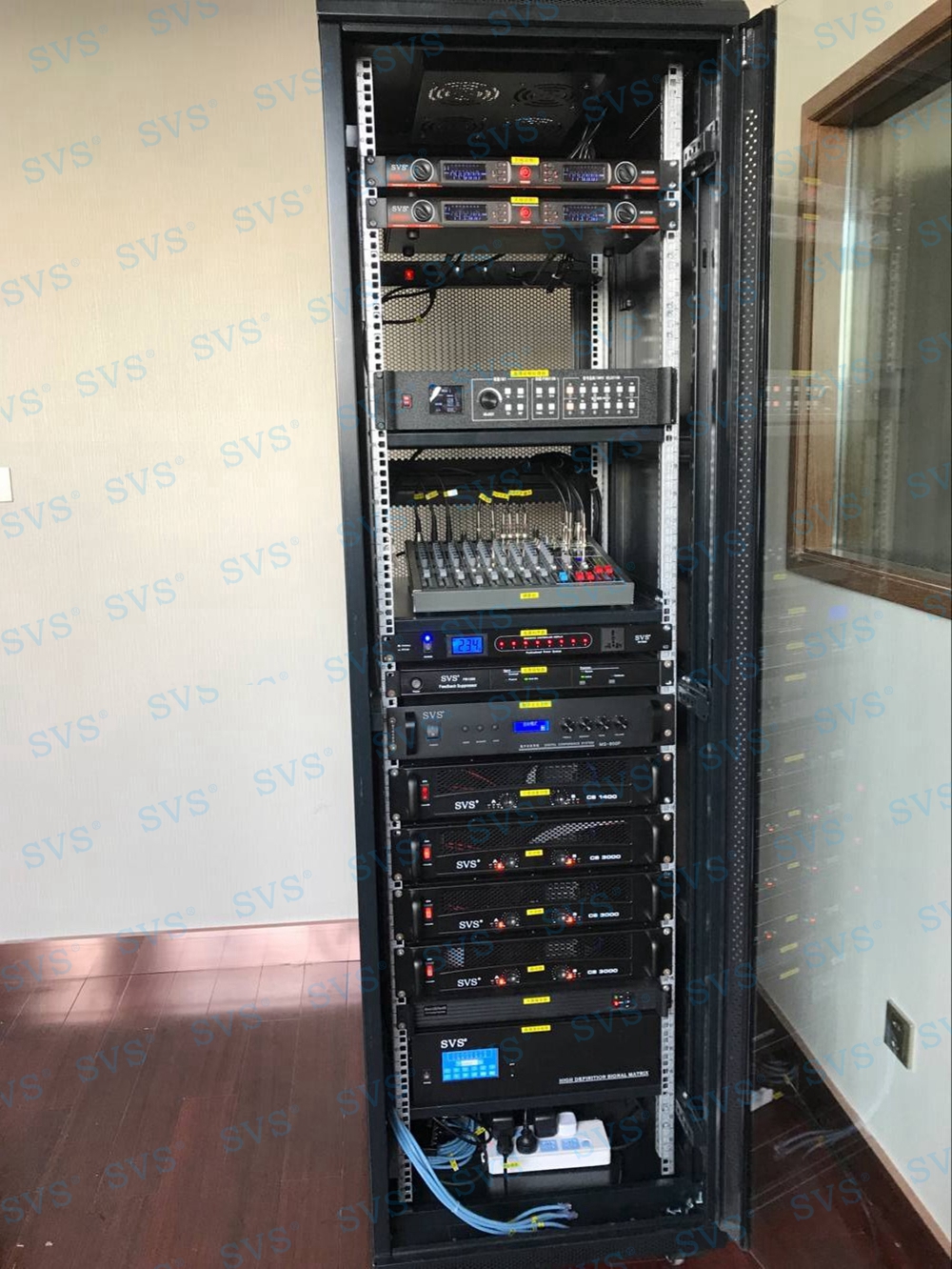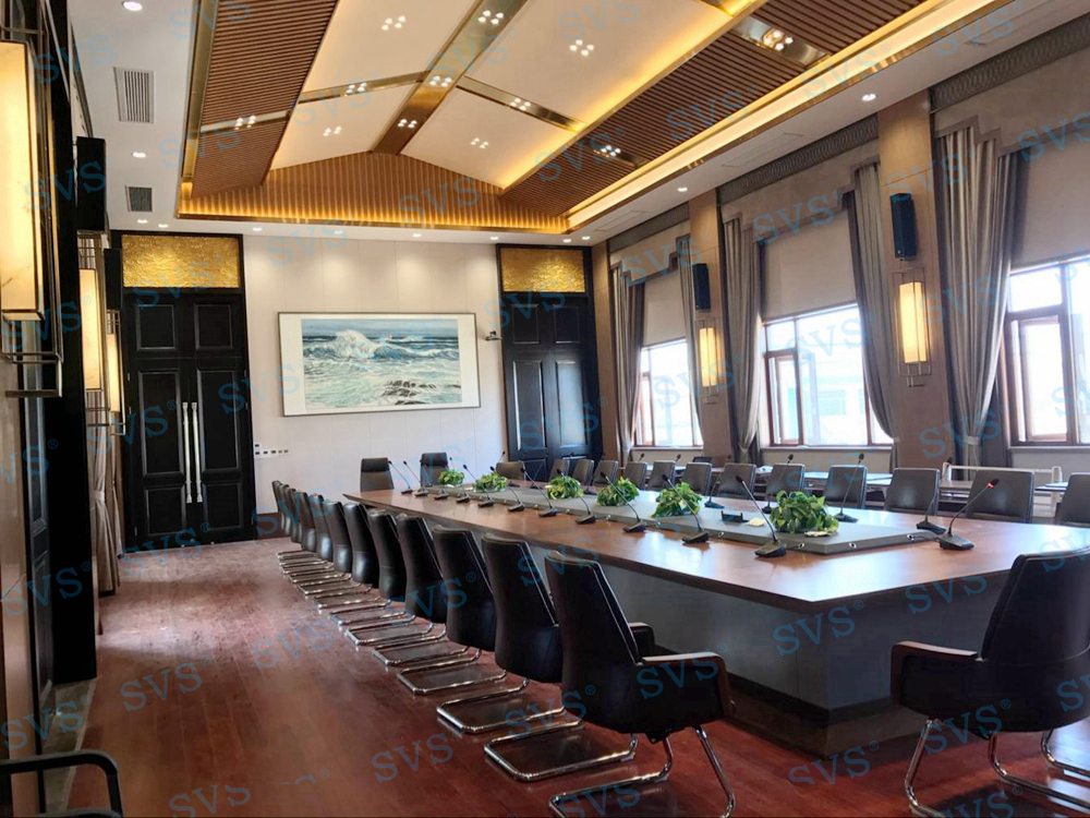 ,此次SVS为某股份有限公司打造一个高级数字化会议中心,会场可同时容纳近50人进行会议,会场装修条件及声场范围都极佳,在如此优良的硬件配置下,迅控为客户建议使用 阵列音箱 D2022(点击了解更多)D2022是一款紧凑型大功率的线性阵列音箱,采用进口知名品牌的2/4个4.5英寸的全频单元和1/2个3英寸高音单元、内置高精度分频器和芬兰高端桦木板材组成;该音箱单元采用3D新型安装方式,非传统的简单平面布置措施,保证了不同的单元声音输出声波不叠加能量,让发出的声音更加清晰,有效声场范围更广,也避免了声波能量抵消,自然达到高保真音质和高还原度的效果。因为体积小、功率大,可级联叠加和易安装等特点,被广泛应用于高端会议室、影院、报告厅和礼堂等场合。优质的现场装修环境配合上优质的音箱产品,为会场打造出一个高端品质的会议声场,最终实现效果,得到公司相关领导的高度认可。