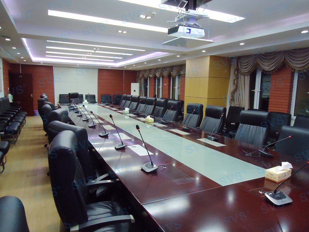 ,此次SVS为某规划局打造一个数字会议室,会场可容纳近50人进行会议,为会议桌设置了22个发言席,迅控为客户选择 会议话筒 SV-MT318AB(点击了解更多),此款会议话筒是会议系统组网中的单元,分主席单元和列席单元,单元具有新型的OLED显示大屏,程序化显示时钟、发言计时、倒计时等内容,让会议更加高效、高质量完成。单元配置高档进口咪芯,配合数字处理电路,展现高保真、高灵敏度、远距离发言效果。咪杆采用螺旋式镀金接口与底座无缝结合,确保长期耐用无杂音。另外单元还具有自动摄像跟踪、多模式控制、自动关机等功能。该产品是新时代会议行业里不可多得的创新型新品,组建系统简单,使用方便,功能强大,效果一流,适用于高要求、固定多位置需要发言的会议场所。